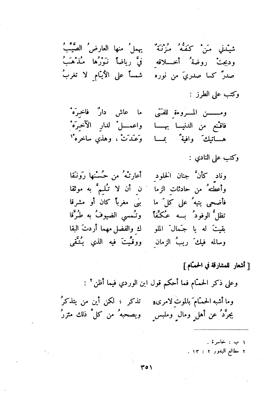هاتيك وافيةٌ بما ... وعدت، وهذي ساخره (1) وكتب على النادي: