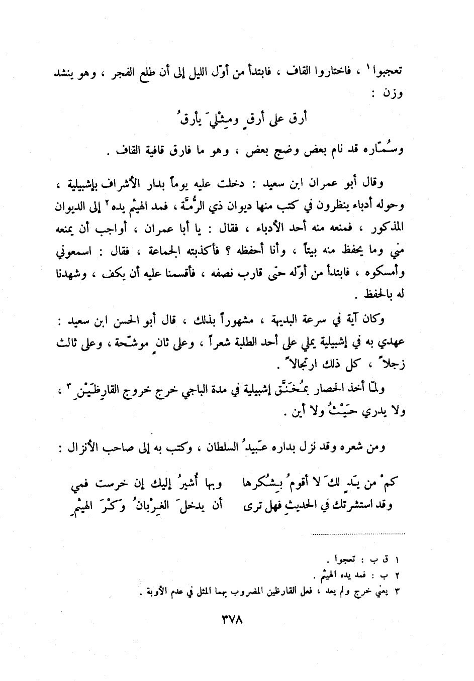 ولما أخذ الحصار بمخنق إشبيلية في مدة الباجي خرج خروج القارظين (3) ، ولا يدري حيث ولا أين.