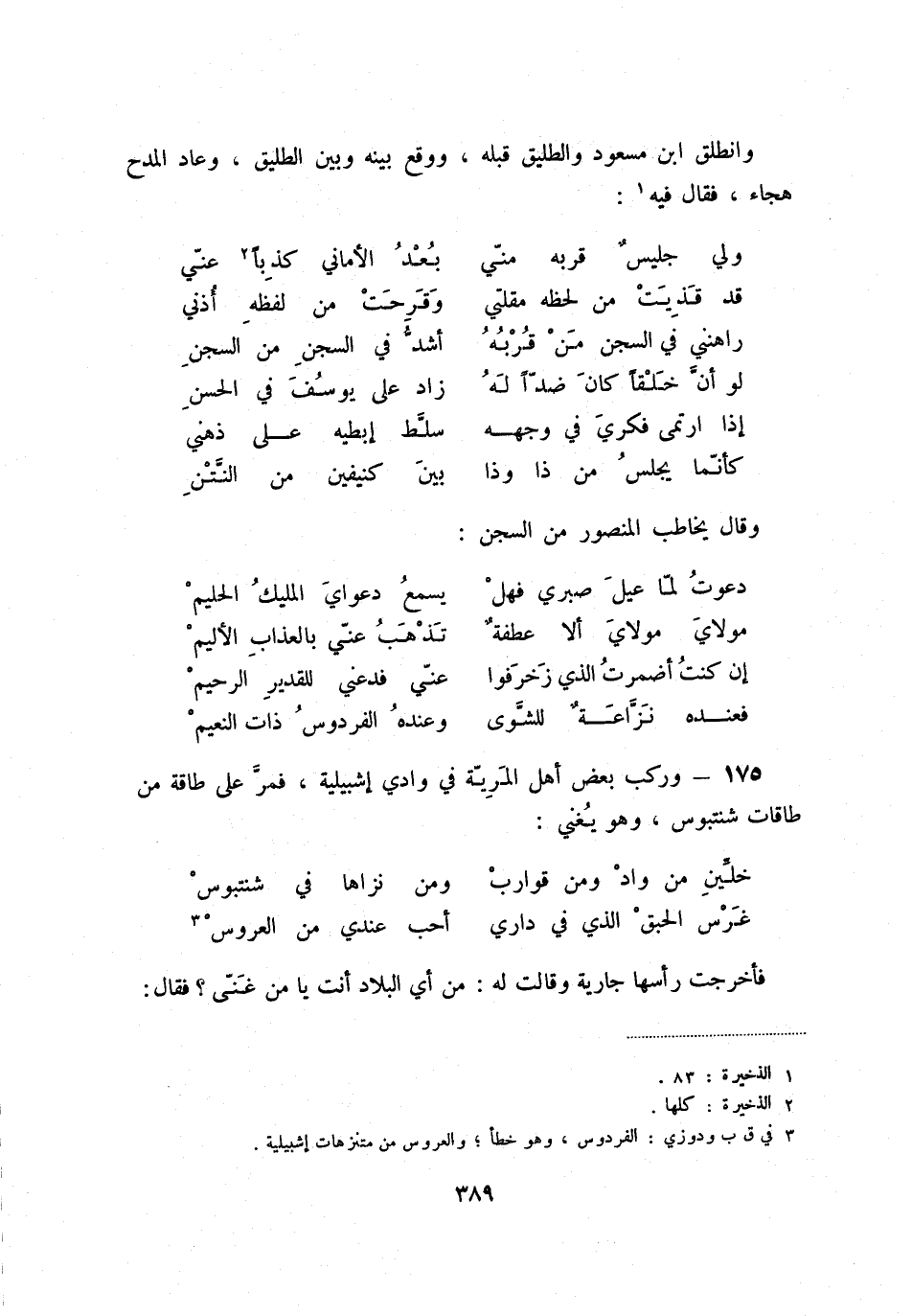 فعنده نزّاعةٌ للشّوى ... وعنده الفردوس ذات النعيم 175 - وركب بعض أهل المرية في وادي إشبيلية، فمر على طاقة من طاقات شنتبوس، وهو يغني: