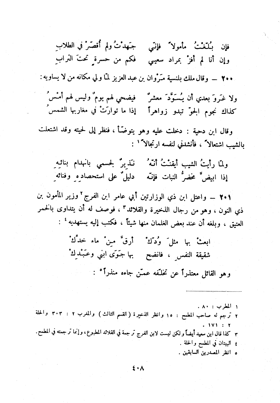 وإن أنا لم أفز بمراد سعيي ... فكم من حسرةٍ تحت التراب 200 - وقال ملك بلنسية مروان بن عبد العزيز لما ولي مكانه من لا يساويه: