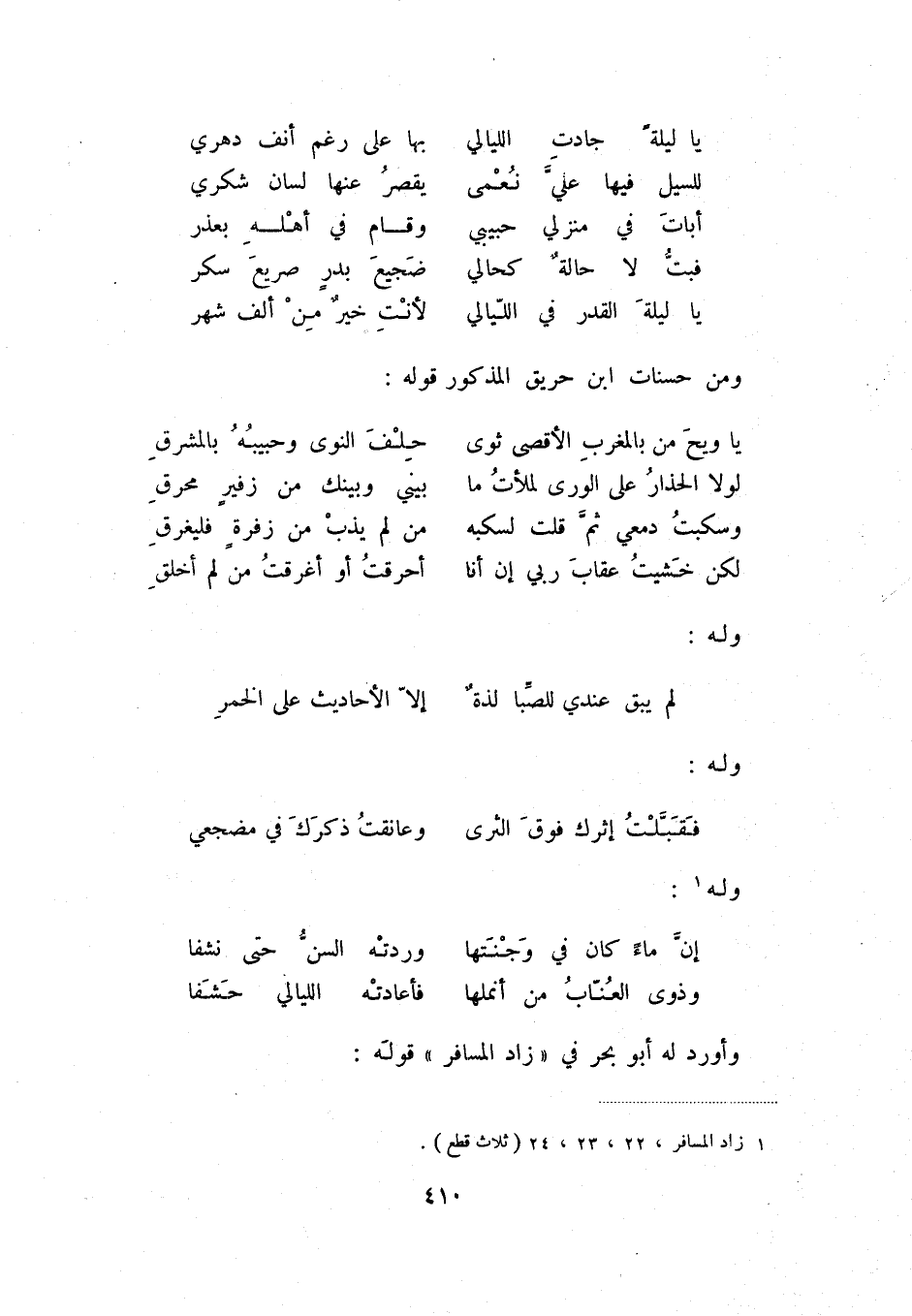 يا ليلة القدر في اللّيالي ... لأنت خيرٌ من ألف شهر ومن حسنات ابن حريق المذكور قوله: