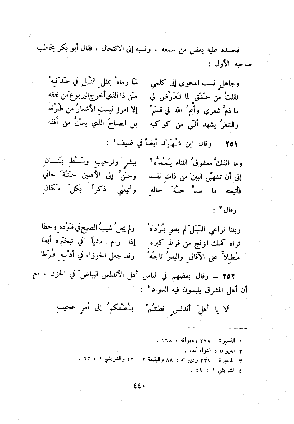 والشعر يشهد أنّي من كواكبه ... بل الصباح الذي يستنّ من أفقه 251 - وقال ابن شهيدٍ أيضاً في ضيف (1) :
