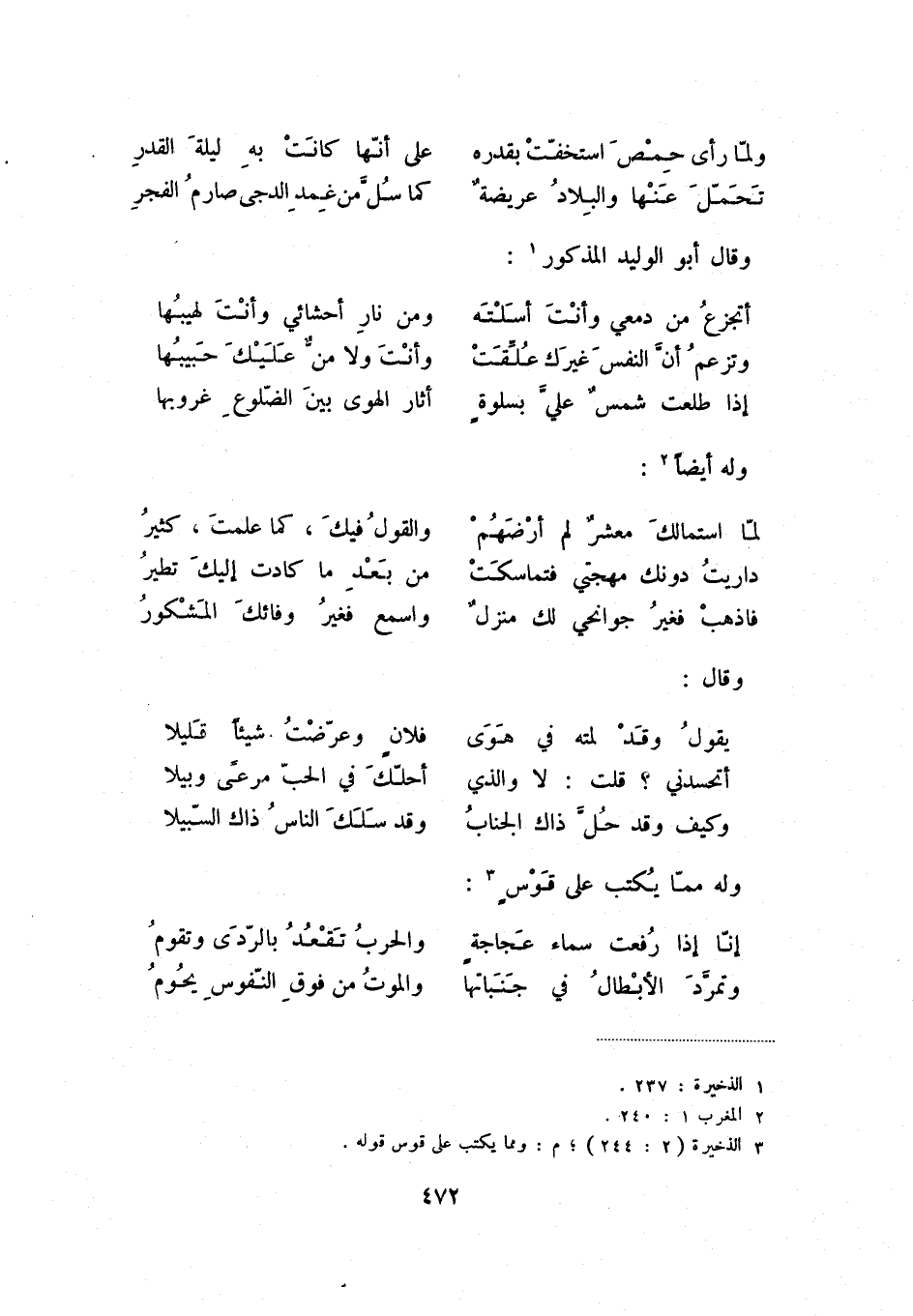 تحمّل عنها والبلاد عريضةٌ ... كما سلّ من غمد الدّجى صارم الفجر وقال أبو الوليد المذكور (1) :