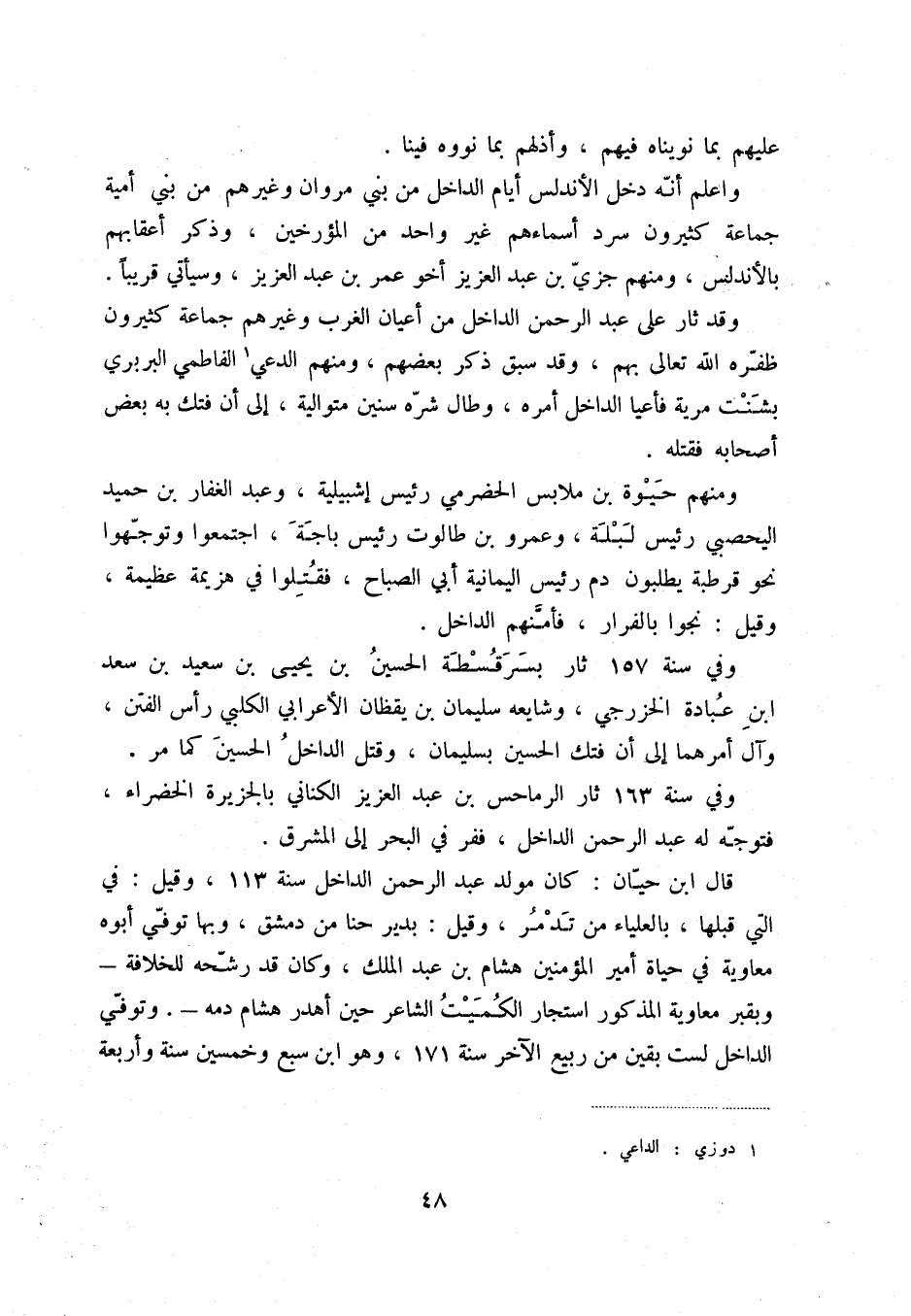 واعلم أنه دخل الأندلس أيام الداخل من بني مروان وغيرهم من بني أمية جماعة كثيرون سرد أسماءهم غير واحد من المؤرخين، وذكر أعقابهم بالأندلس، ومنهم جزيّ بن عبد العزيز أخو عمر بن عبد العزيز، وسيأتي قريباً.