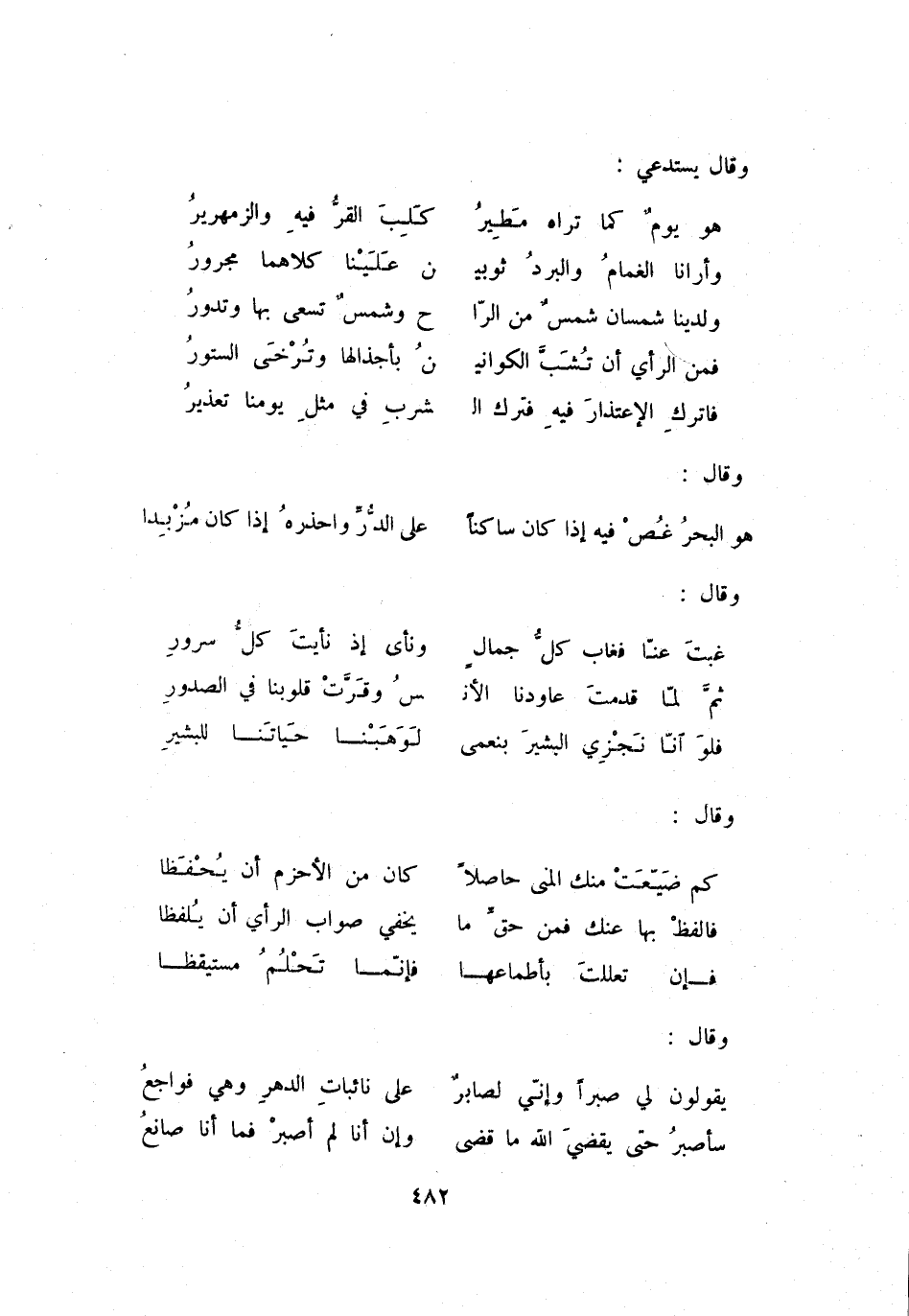 ثمّ لمّا قدمت عاودنا الأن ... س وقرّت قلوبنا في الصدور