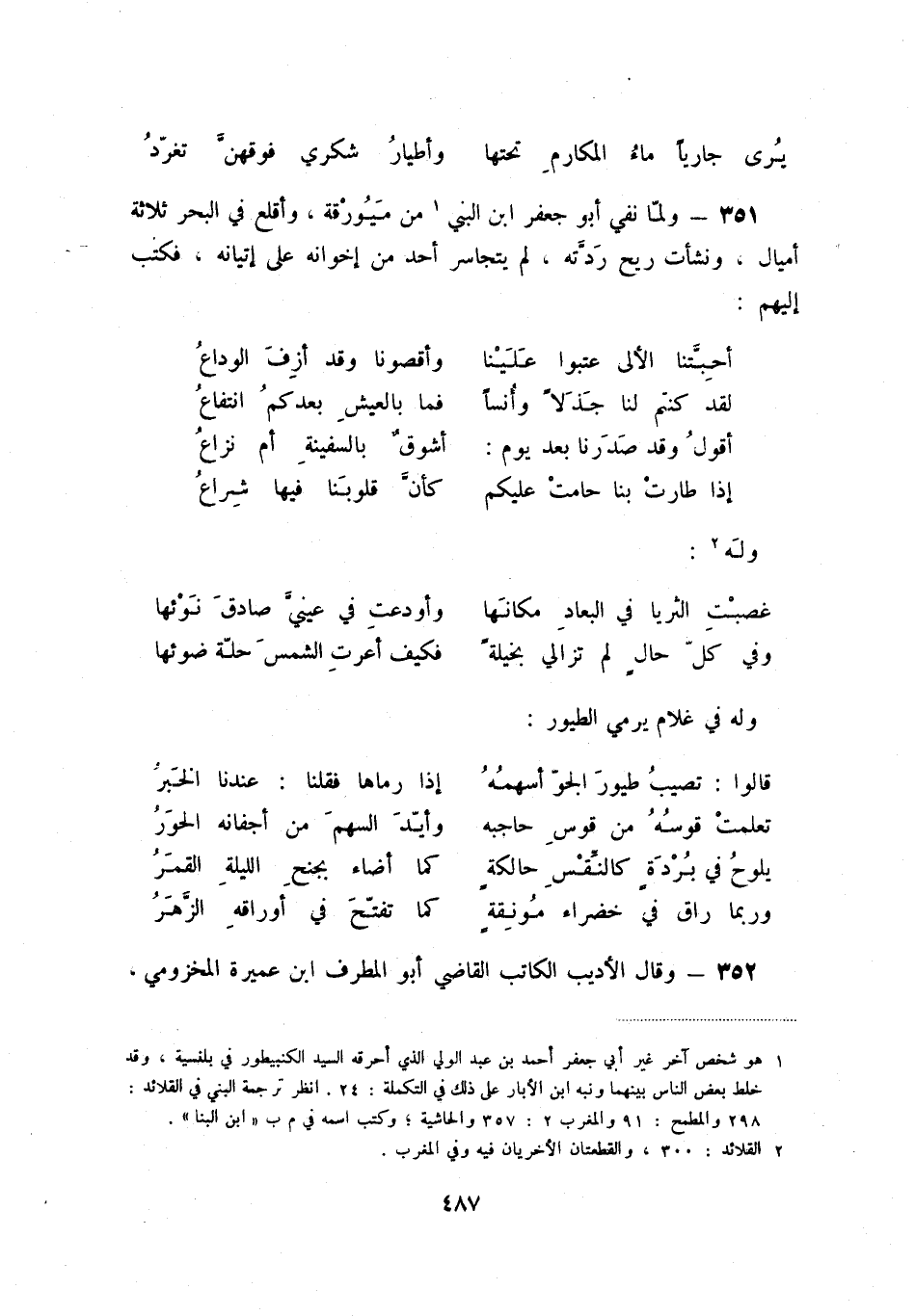 (2) القلائد: 300، والقطعتان الأخيرتان فيه وفي المغرب.