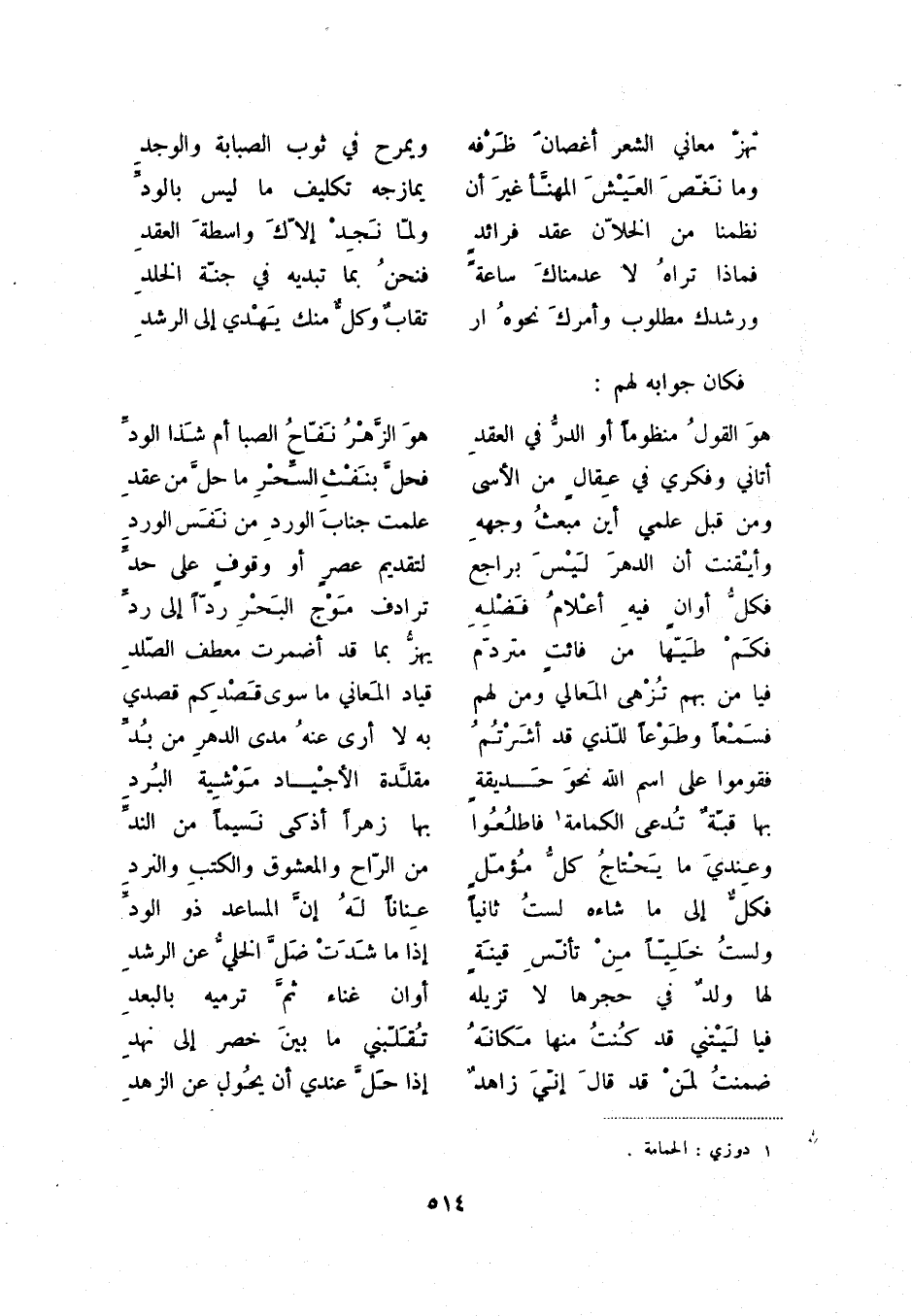 ورشدك مطلوب وامرك نحوه ار ... تقابٌ وكلٌّ منك يهدي إلى الرشد فكان جوابه لهم:
