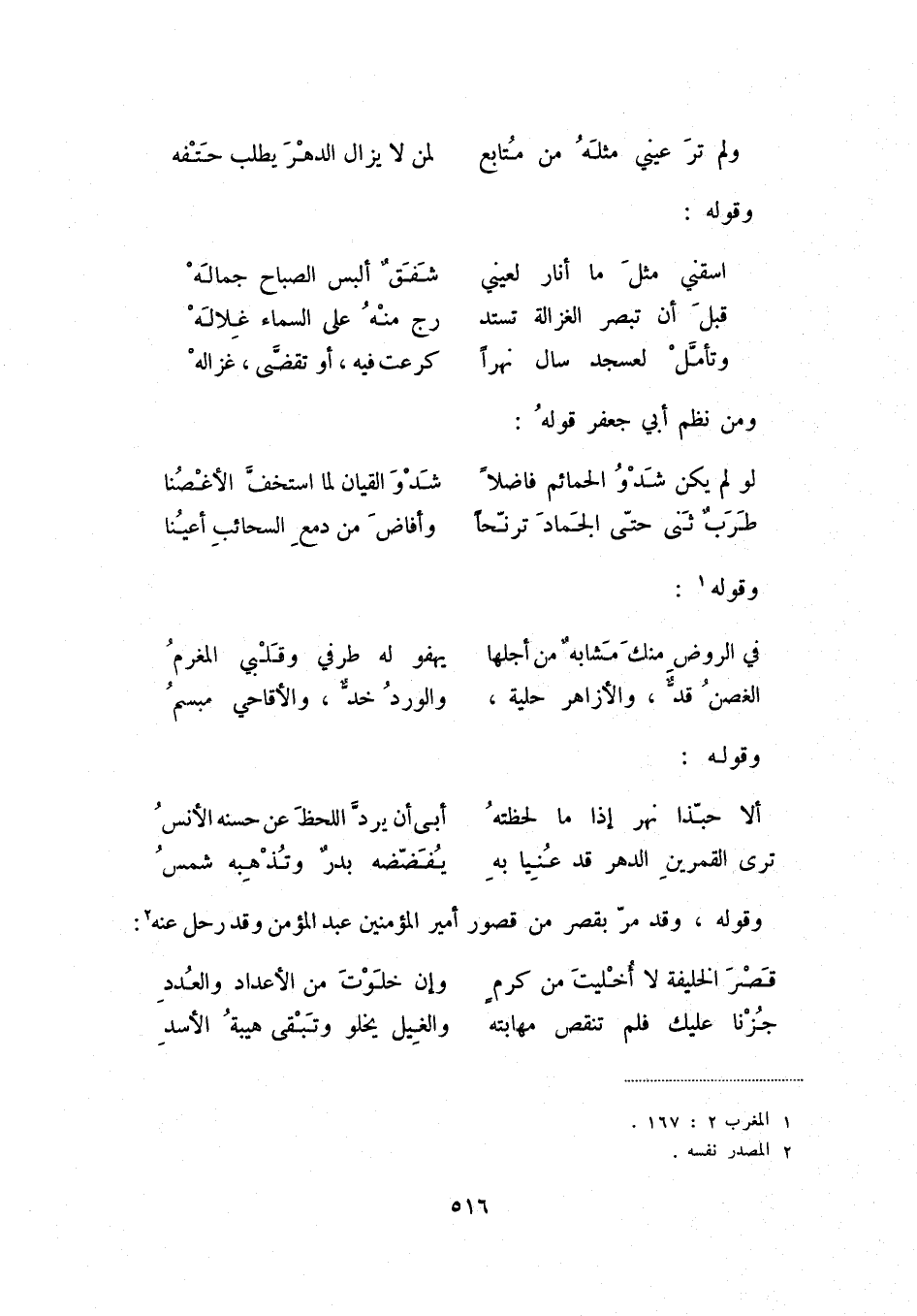 ترى القمرين الدهر قد عنيا به ... يفضّضه بدرٌ وتذهبه شمس وقوله، وقد مر بقصر من قصور أمير المؤمنين عبد المؤمن وقد رحل عنه (2) :