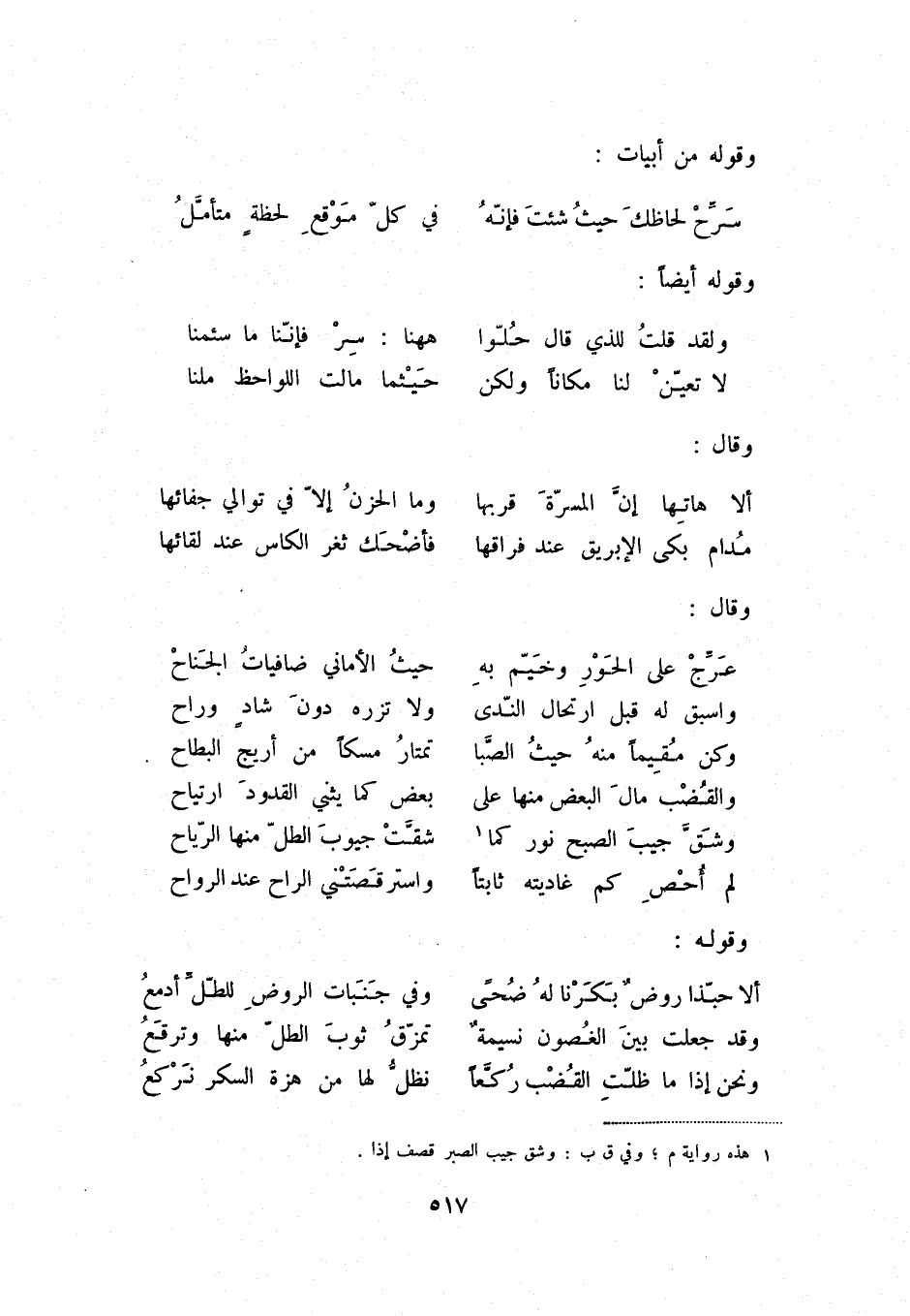 سرّح لحاظك حيث شئت فإنّه ... في كلّ موقع لحظةٍ متأمّل وقوله أيضاً: