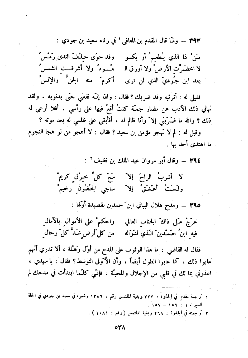 393 - ولما قال المقدم بن المعافى (1) في رثاء سعيد بن جودي: