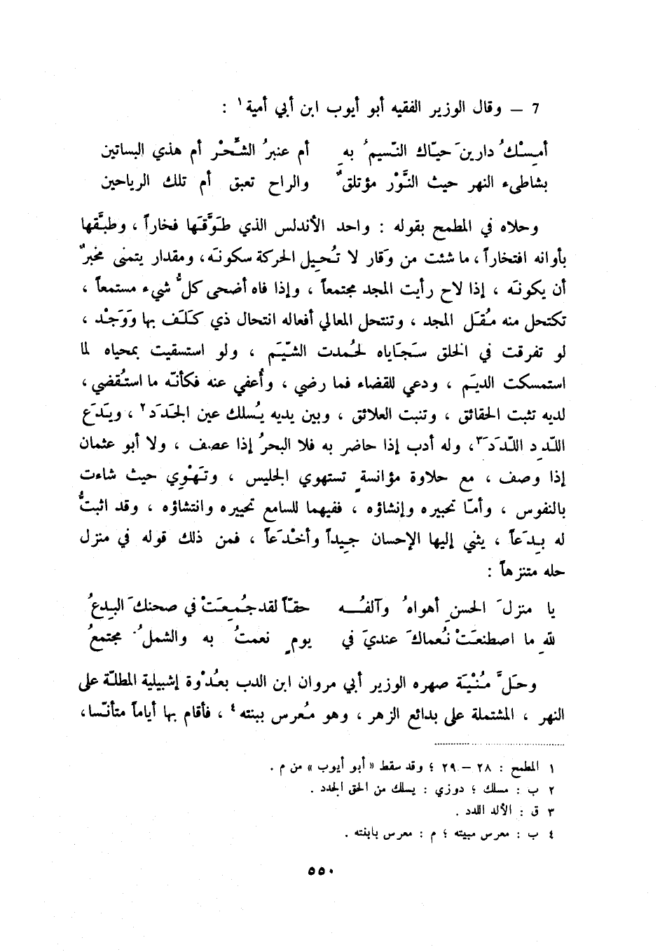 7 - وقال الوزير الفقيه أبو أيوب ابن أبي أمية (1) :