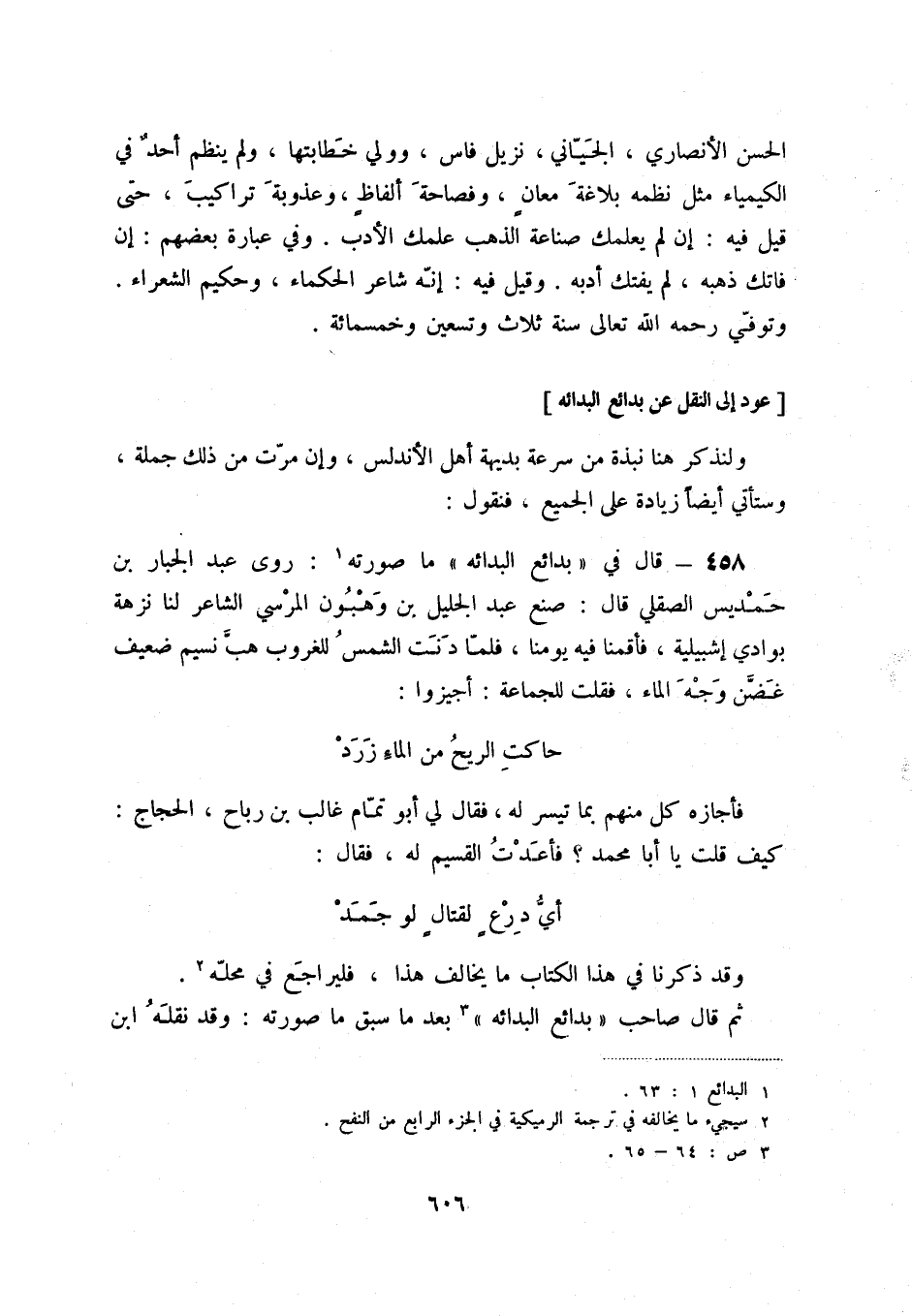ثم قال صاحب " بدائع البدائه " (3) بعد ما سبق ما صورته: وقد نقله ابن