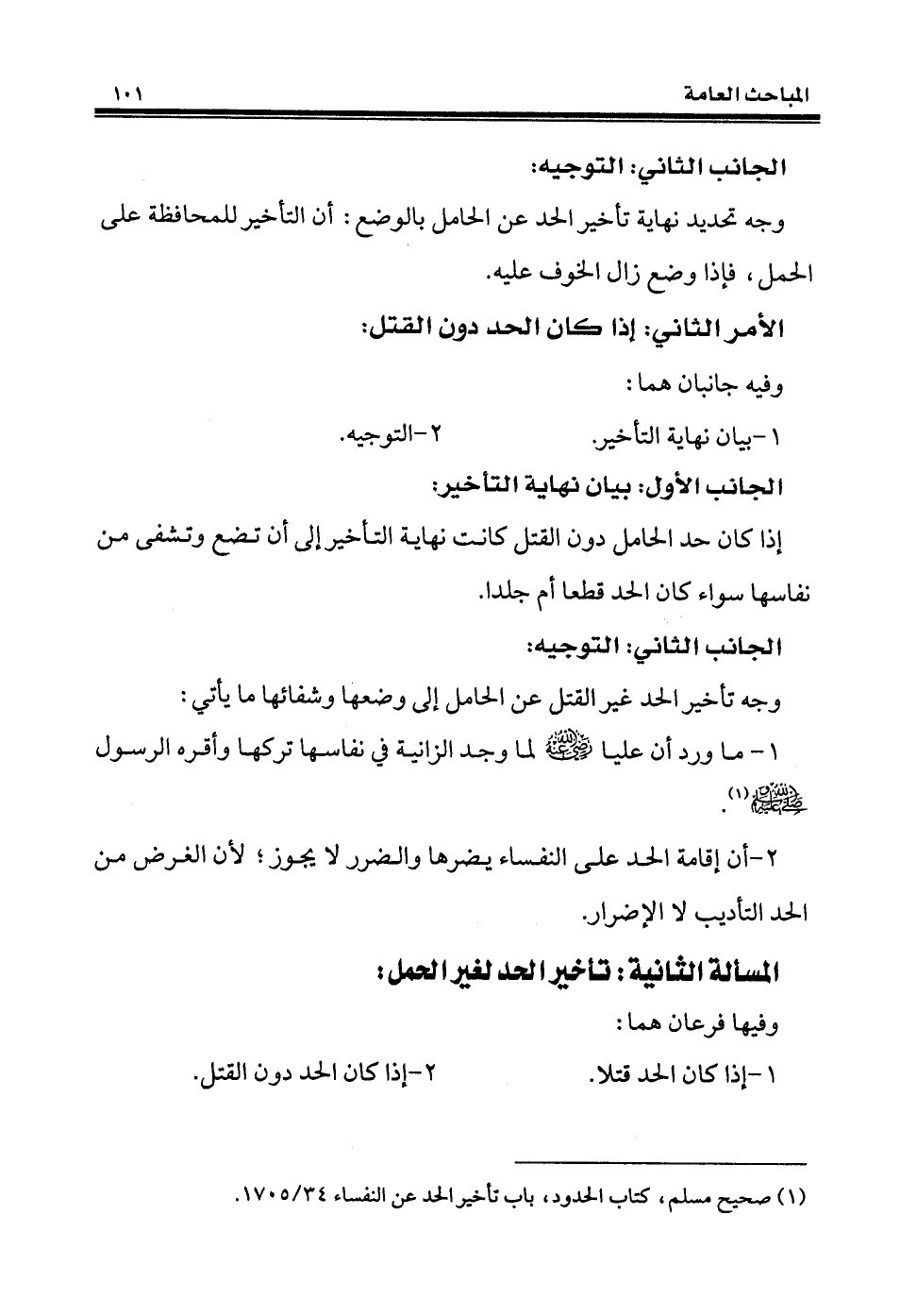 (¬1) صحيح مسلم، كتاب الحدود، باب تأخير الحد عن النفساء 34/ 1705.