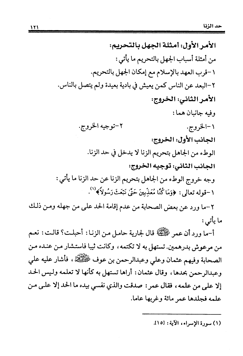 الوطء من الجاهل بتحريم الزنا لا يدخل في حد الزنا.
