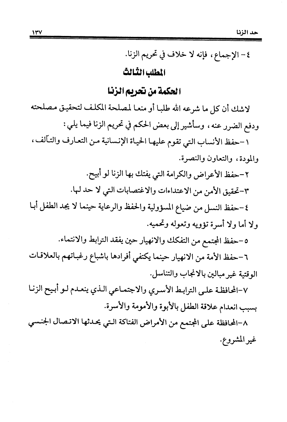 7 - المحافظة على الترابط الأسري والاجتماعي الذي ينعدم لو أبيح الزنا بسبب انعدام علاقة الطفل بالأبوة والأمومة والأسرة.
