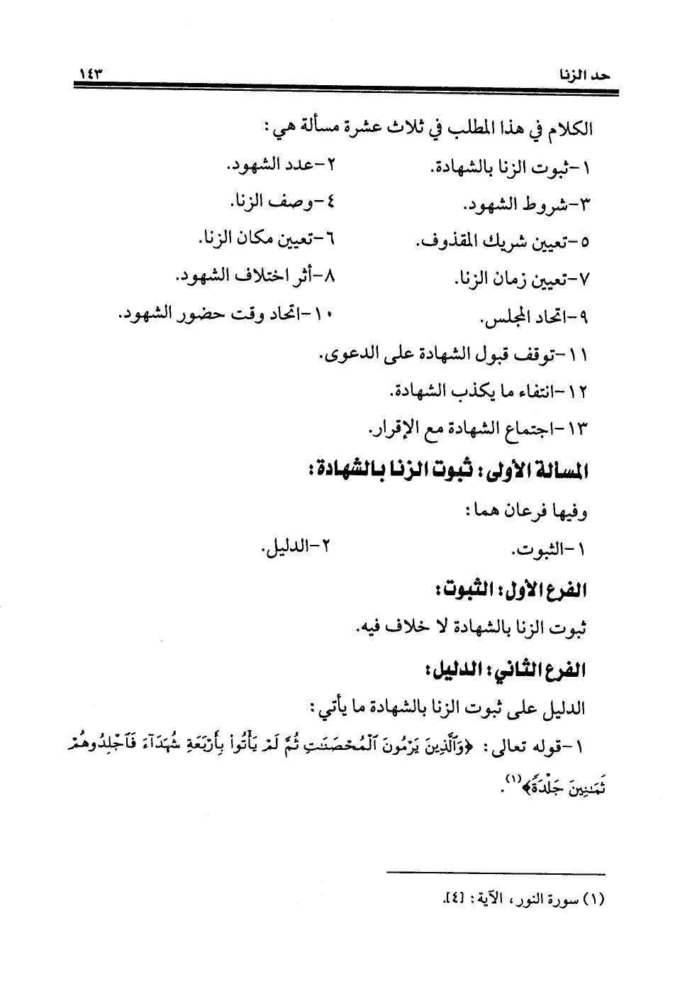 المسألة الأولى: ثبوت الزنا بالشهادة:
