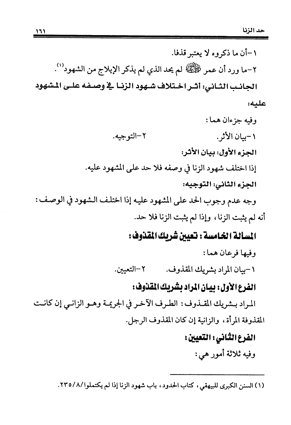 (¬1) السنن الكبرى للبيهقي، كتاب الحدود، باب شهود الزنا إذا لم يكتملوا/ 8/ 235.