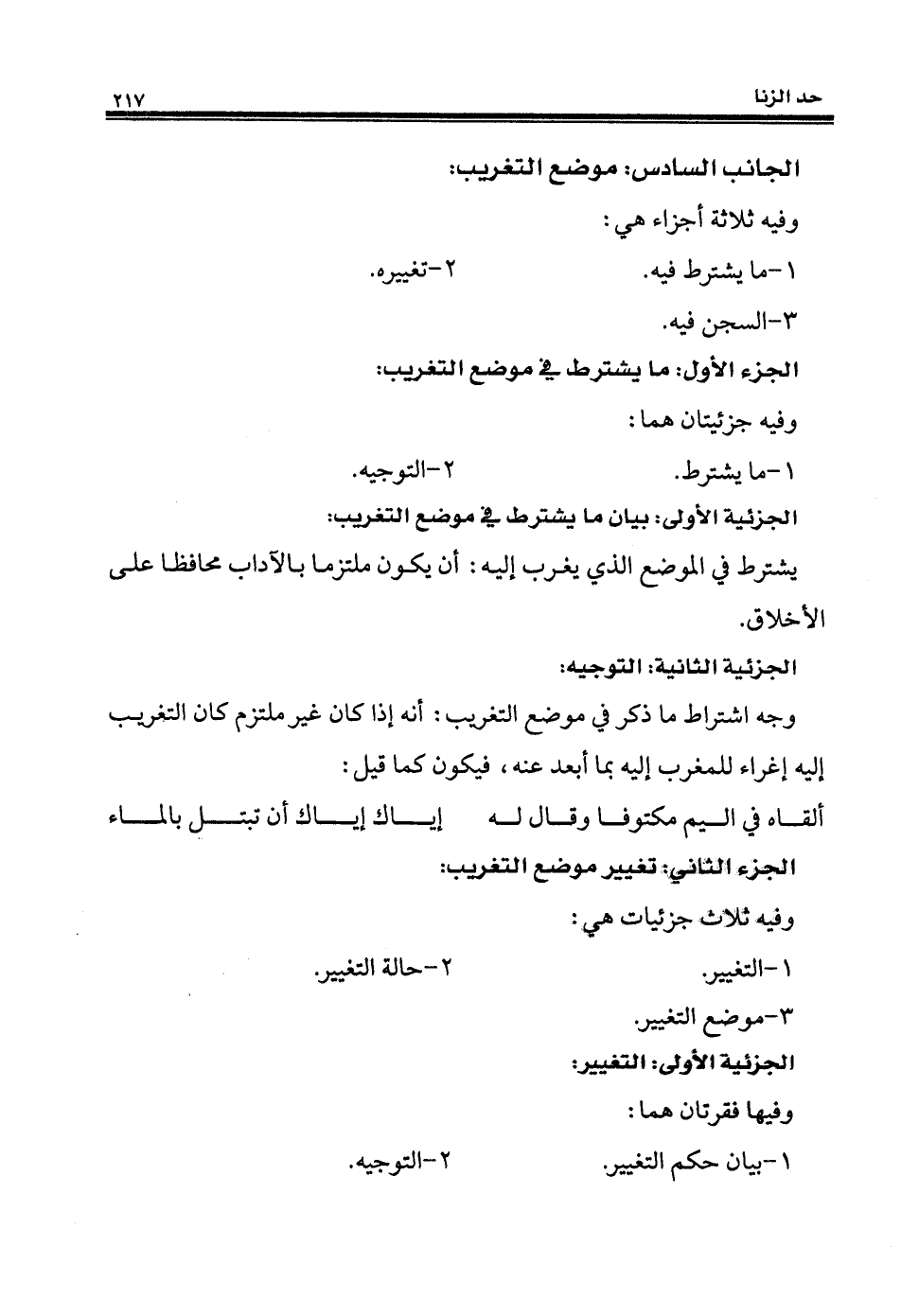 الجزء الأول: ما يشترط في موضع التغريب: