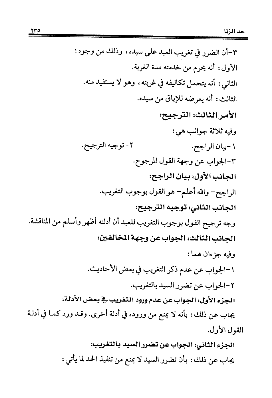 الجزء الثاني: الجواب عن تضرر السيد بالتغريب: