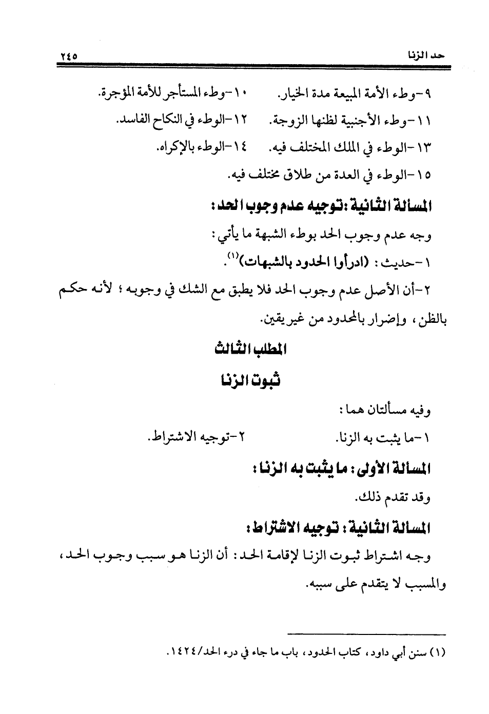 (¬1) سنن أبي داود، كتاب الحدود، باب ما جاه في درء الحد/ 1424.