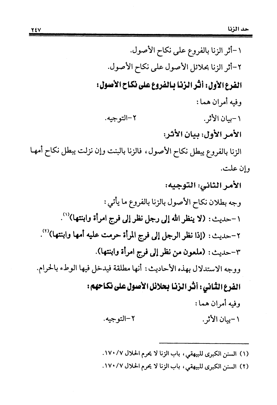 (¬2) السنن الكبرى للبيهقي، باب الزنا لا يحرم الحلال 7/ 170.