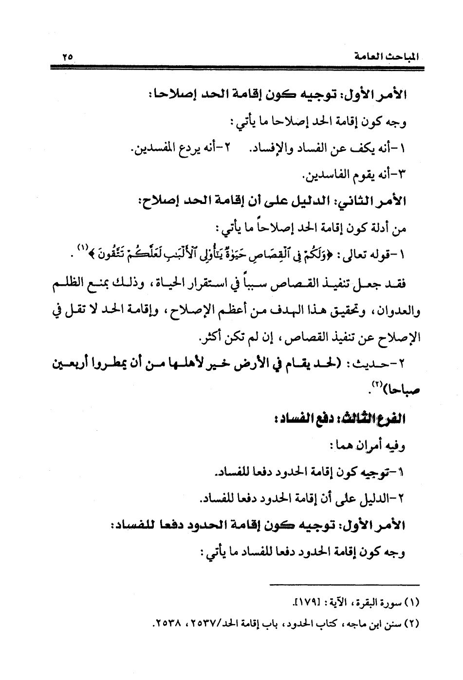 1 - توجيه كون إقامة الحدود دفعا للفساد: