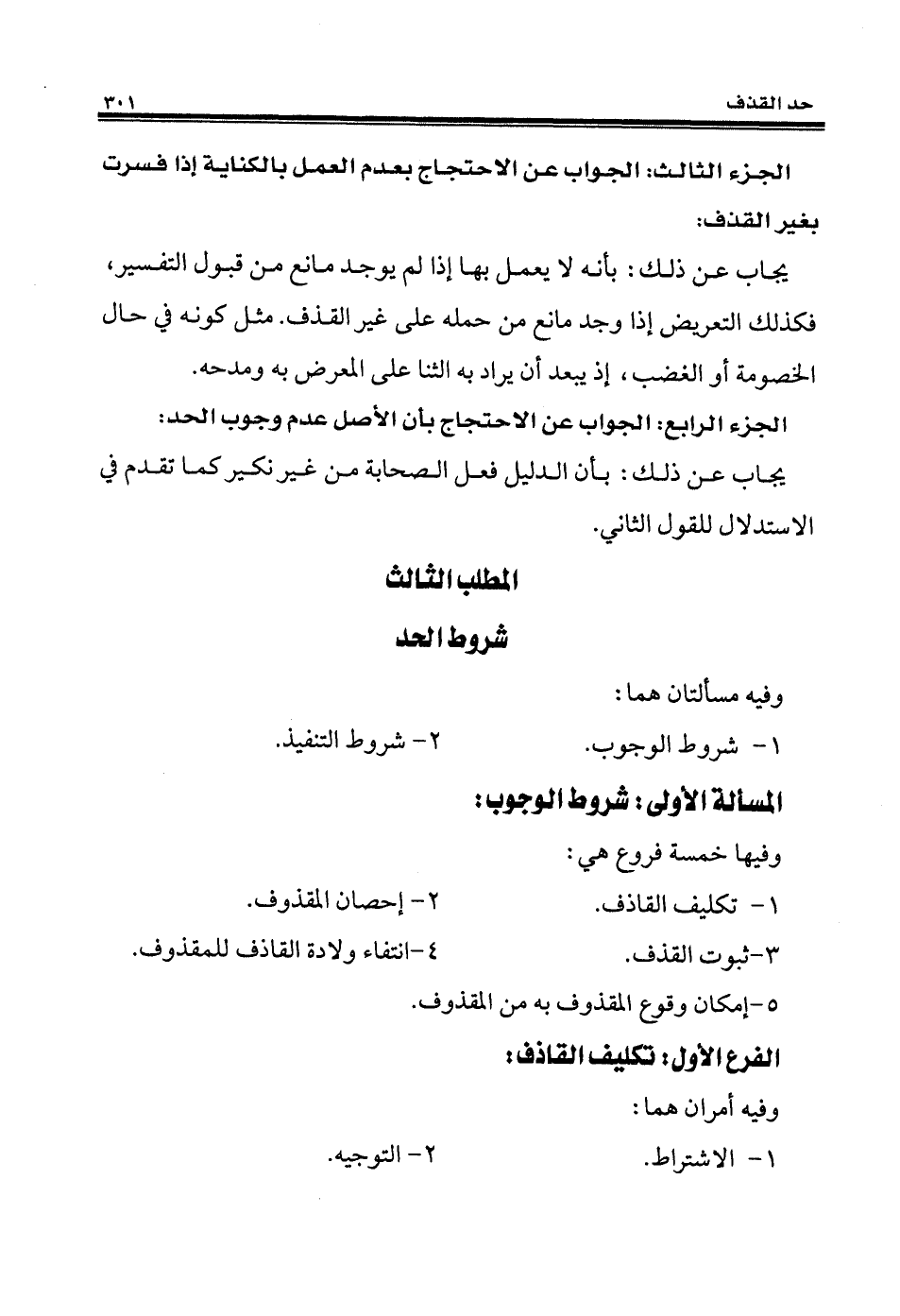 الجزء الثالث: الجواب عن الاحتجاج بعدم العمل بالكناية إذا فسرت بغير القذف: