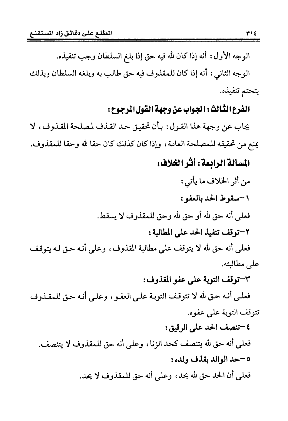 الوجه الثاني: أنه إذا كان للمقذوف فيه حق طالب به وبلغه السلطان وبذلك يتحتم تنفيذه.