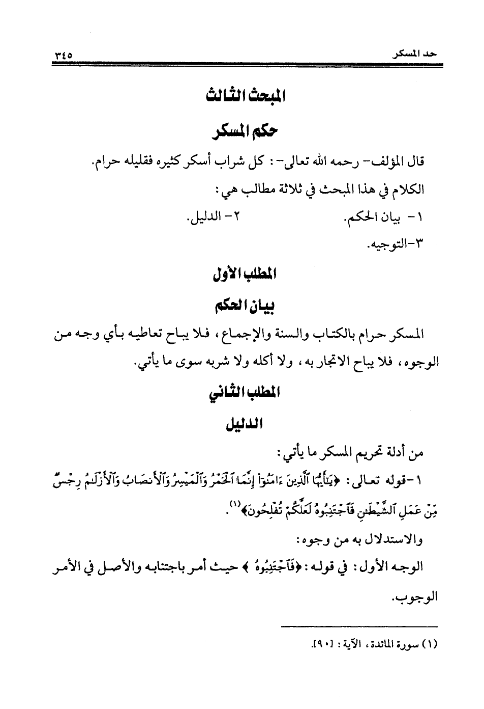 1 - قوله تعالى: {يَاأَيُّهَا الَّذِينَ آمَنُوا إِنَّمَا الْخَمْرُ وَالْمَيْسِرُ وَالْأَنْصَابُ وَالْأَزْلَامُ رِجْسٌ مِنْ عَمَلِ الشَّيْطَانِ فَاجْتَنِبُوهُ لَعَلَّكُمْ تُفْلِحُونَ} (¬1).
