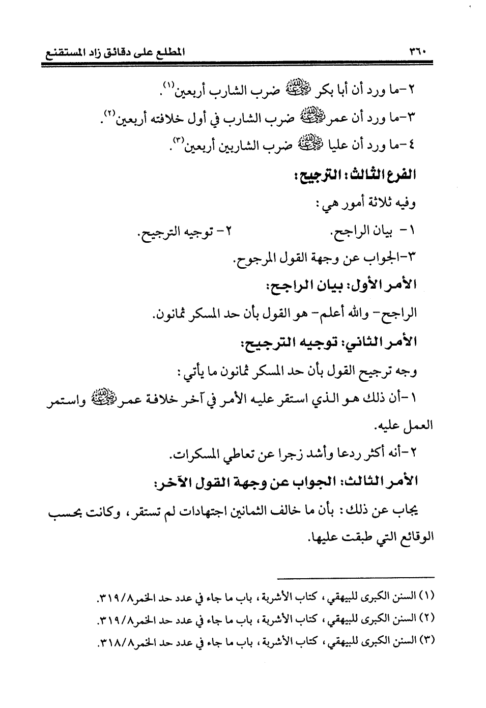 (¬3) السنن الكبرى للبيهقي، كتاب الأشربة، باب ما جاء في عدد حد الخمر 8/ 318.