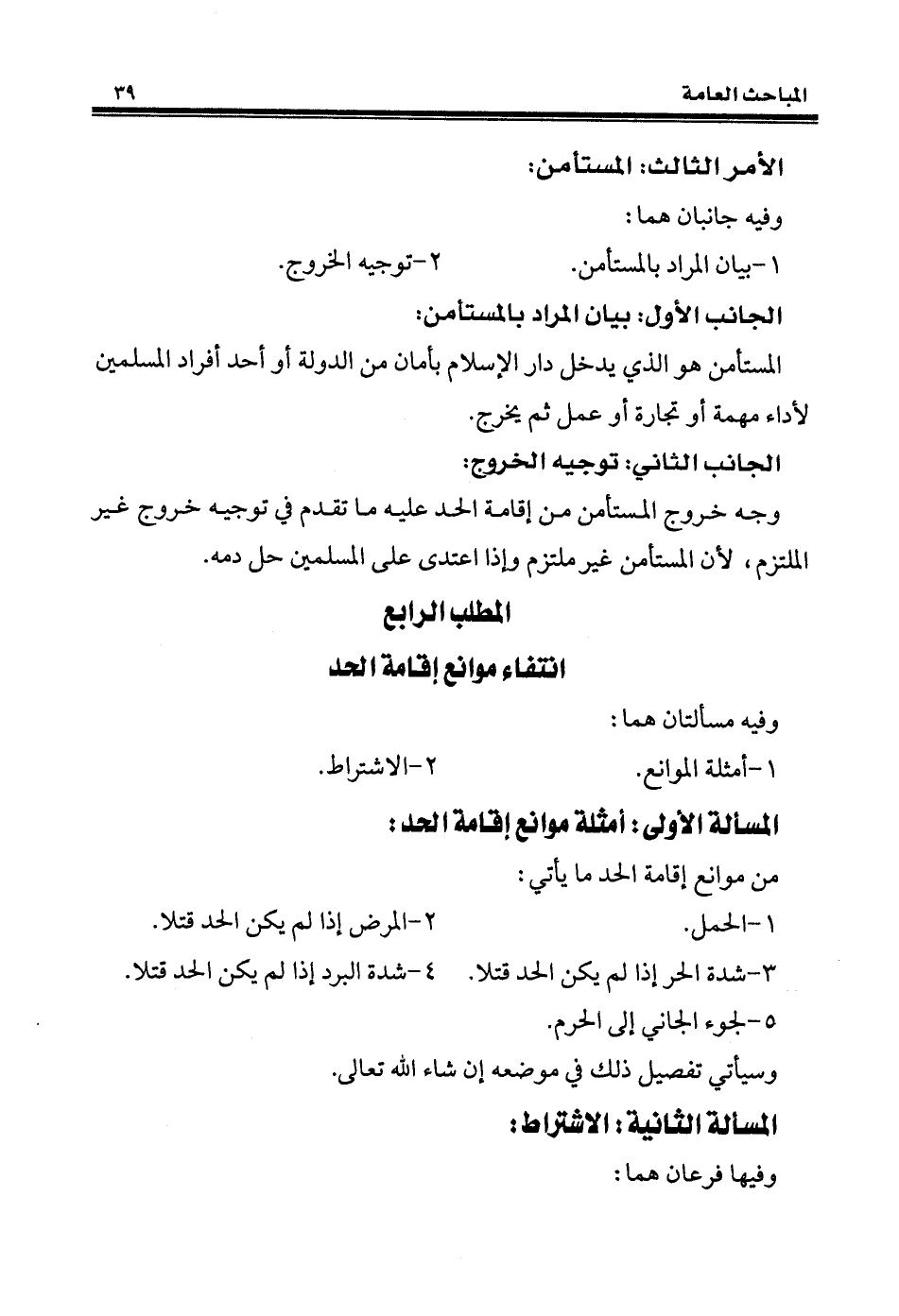 المسألة الأولى: أمثلة موانع إقامة الحد:
