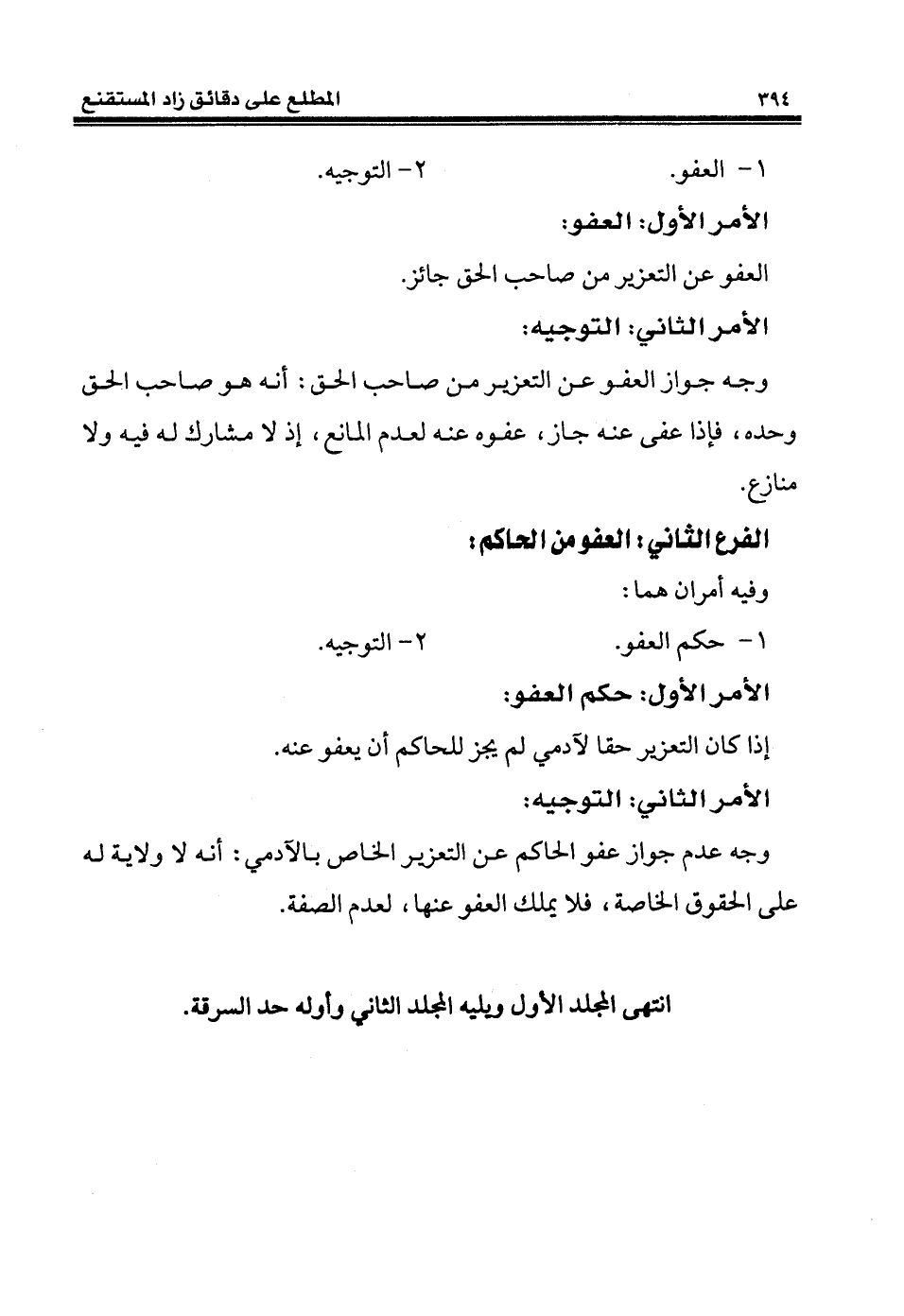 انتهى المجلد الأول ويليه المجلد الثاني وأوله حد السرقة.