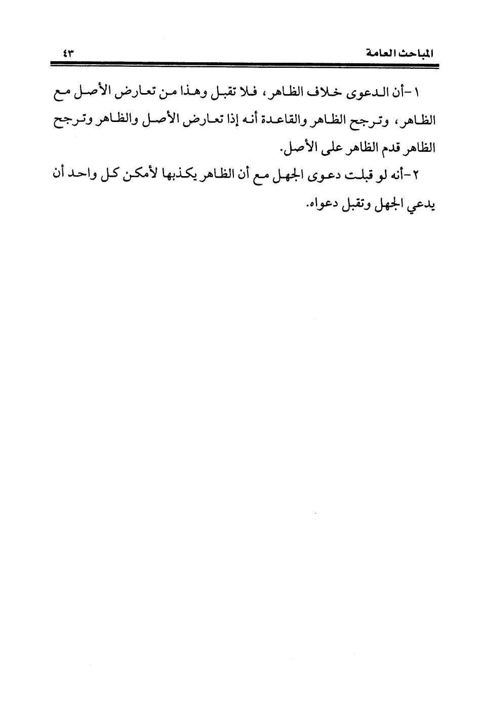 1 - أن الدعوى خلاف الظاهر، فلا تقبل وهذا من تعارض الأصل مع الظاهر، وترجح الظاهر والقاعدة أنه إذا تعارض الأصل والظاهر وترجح الظاهر قدم الظاهر على الأصل.