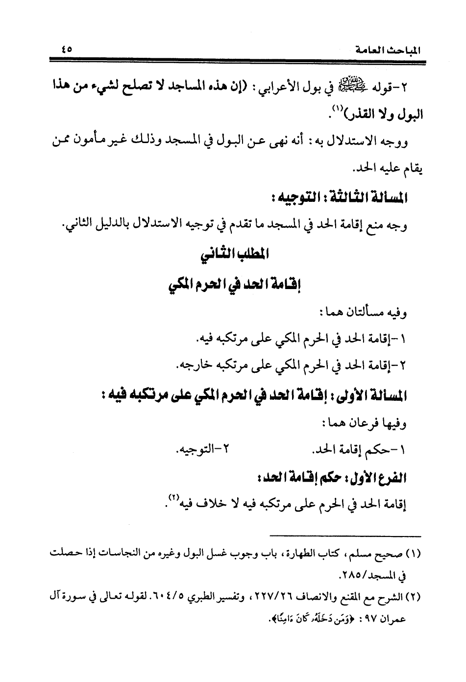2 - إقامة الحد في الحرم المكي على مرتكبه خارجه.