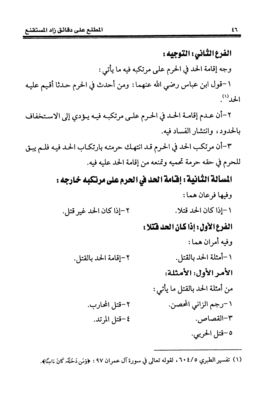 1 - قول ابن عباس رضى الله عنهما: ومن أحدث في الحرم حدثا أقيم عليه الحد (¬1).