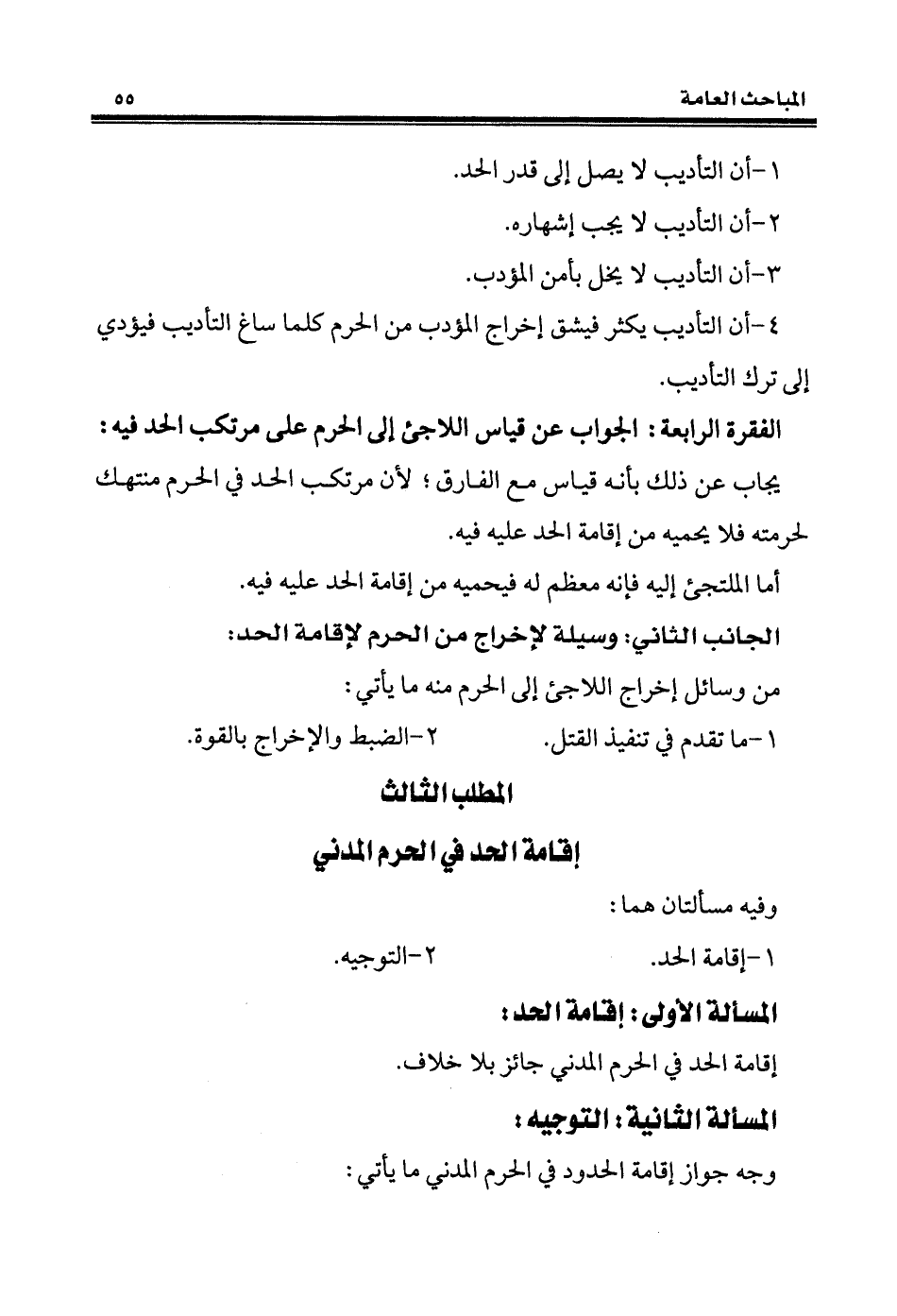 وجه جواز إقامة الحدود في الحرم المدني ما يأتي: