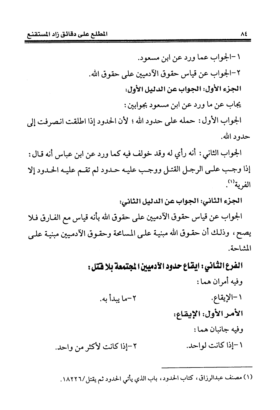 (¬1) مصنف عبد الرزاق، كتاب الحدود، باب الذي يأتي الحدود ثم يقتل/ 18226.