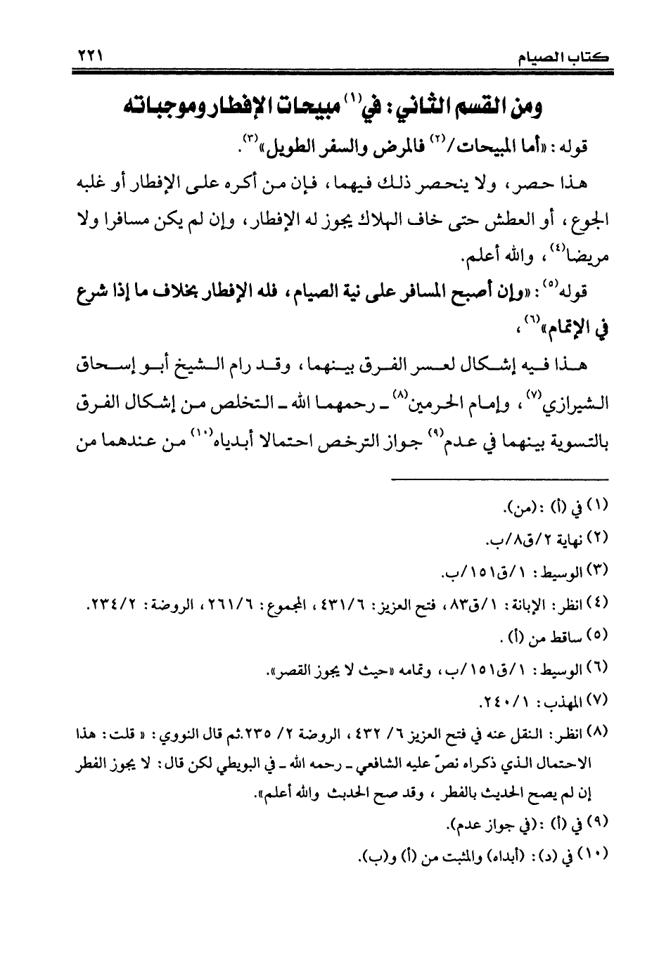 (¬8) انظر: النقل عنه في فتح العزيز 6/ 432، الروضة 2/ 235. ثم قال النووي: "قلت: هذا الاحتمال الذي ذكراه نصّ عليه الشافعي - رحمه الله - في البويطي لكن قال: لا يجوز الفطر إن لم يصح الحديث بالفطر، وقد صح الحديث والله أعلم".