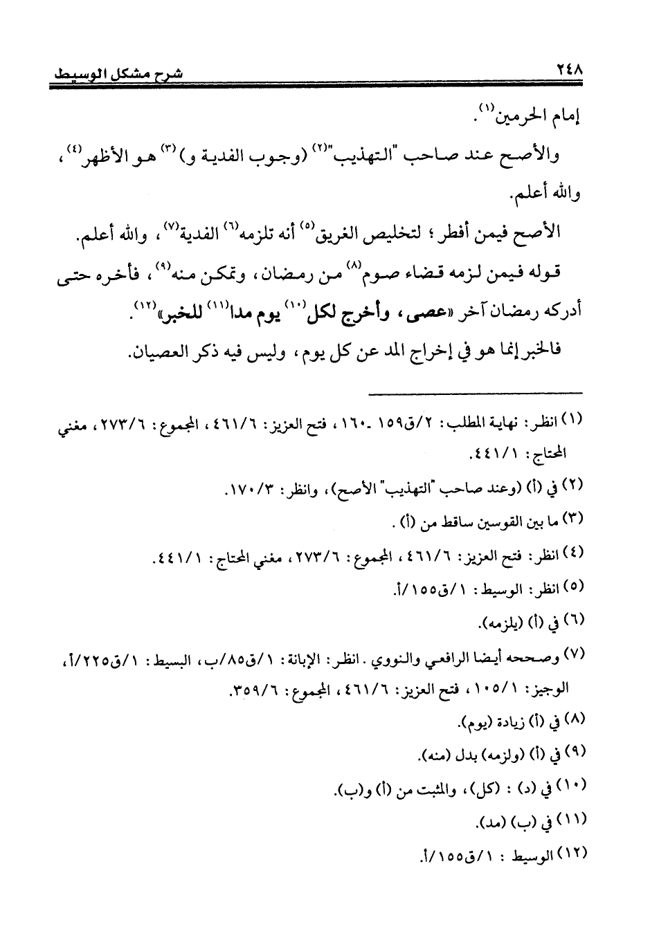 (¬4) انظر: فتح العزيز: 6/ 461، المجموع: 6/ 273، مغني المحتاج: 1/ 441.