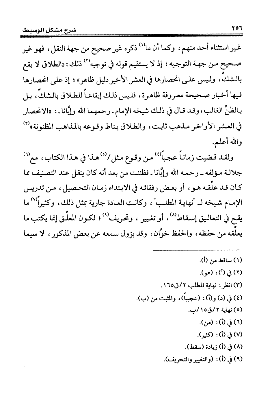 ولقد قضيت زماناً عجباً (¬4) من وقوع مثل (¬5) هذا في هذا الكتاب، مع (¬6) جلالة مؤلفه - رحمه الله وإيَّانا - فظننت من بعد أنه كان ينقل عند التصنيف مما كان قد علَّقه هو، أو بعض رفقائه في الابتداء زمان التحصيل، من تدريس الإِمام شيخه لـ "نهاية المطلب"، وكانت العادة جارية بمثل ذلك، وكثيراً (¬7) ما يقع في التعاليق إسقاط (¬8)، أو تغيير، وتحريف (¬9)؛ لكون المعلِّق إنما يكتب ما يعلِّقه من حفظه، والحفظ خوَّان، وقد يزول سمعه عن بعض المذكور، لا سيما