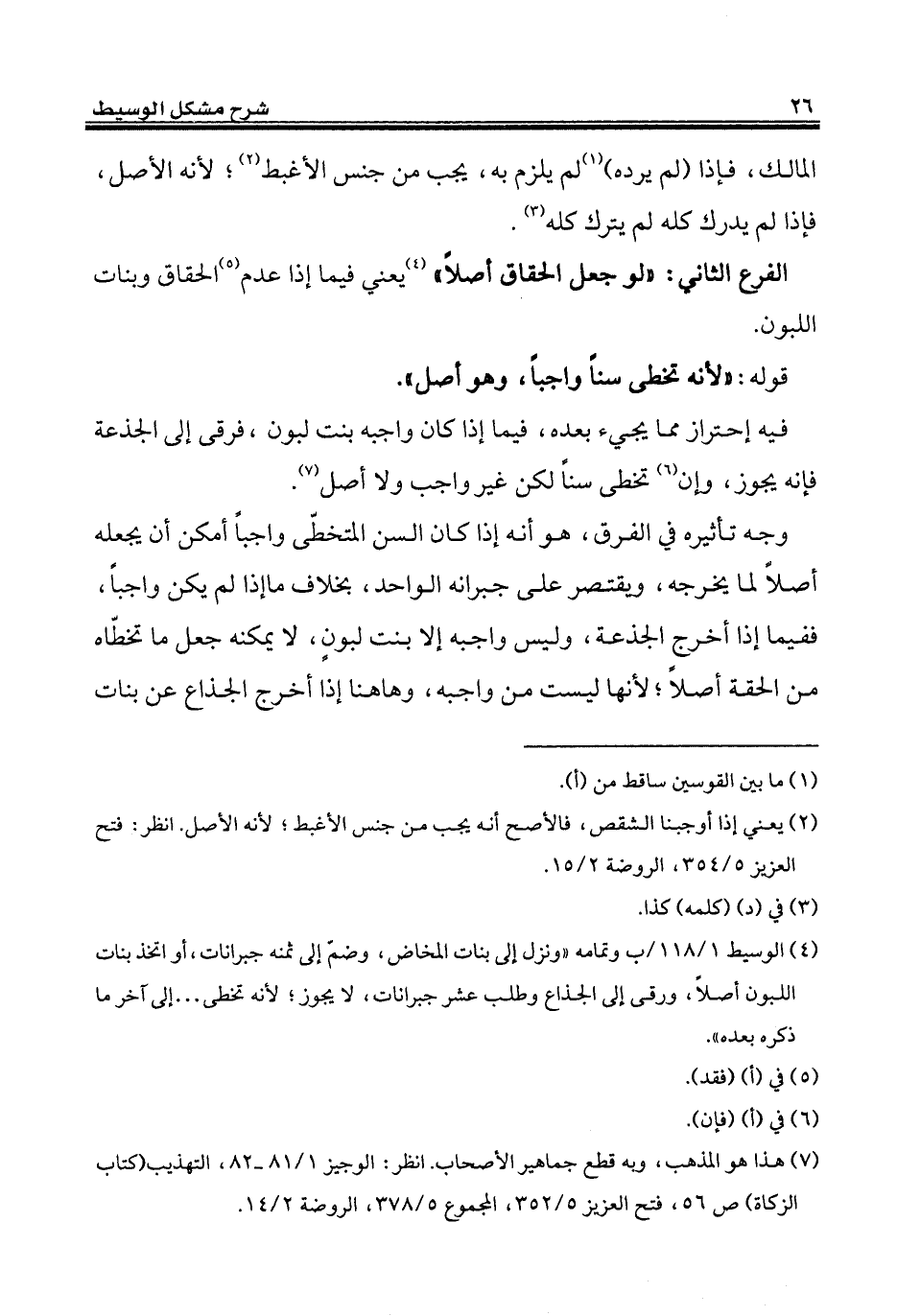 (¬4) الوسيط 1/ 118/ ب وتمامه "ونزل إلى بنات المخاض، وضمّ إلى ثمنه جبرانات، أو اتخذ بنات اللبون أصلاً، ورقى إلى الجذاع وطلب عشر جبرانات، لا يجوز؛ لأنه تخطى ... إلى آخر ما ذكره بعده".