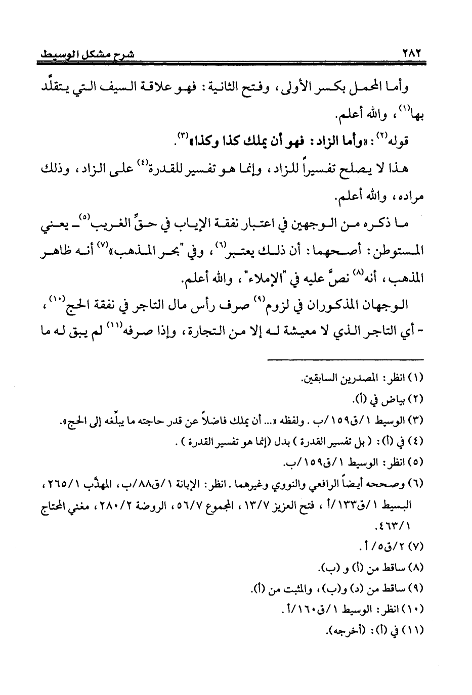 (¬3) الوسيط 1/ ق 159/ ب. ولفظه " ... أن يملك فاضلاً عن قدر حاجته ما يبلِّغه إلى الحج".