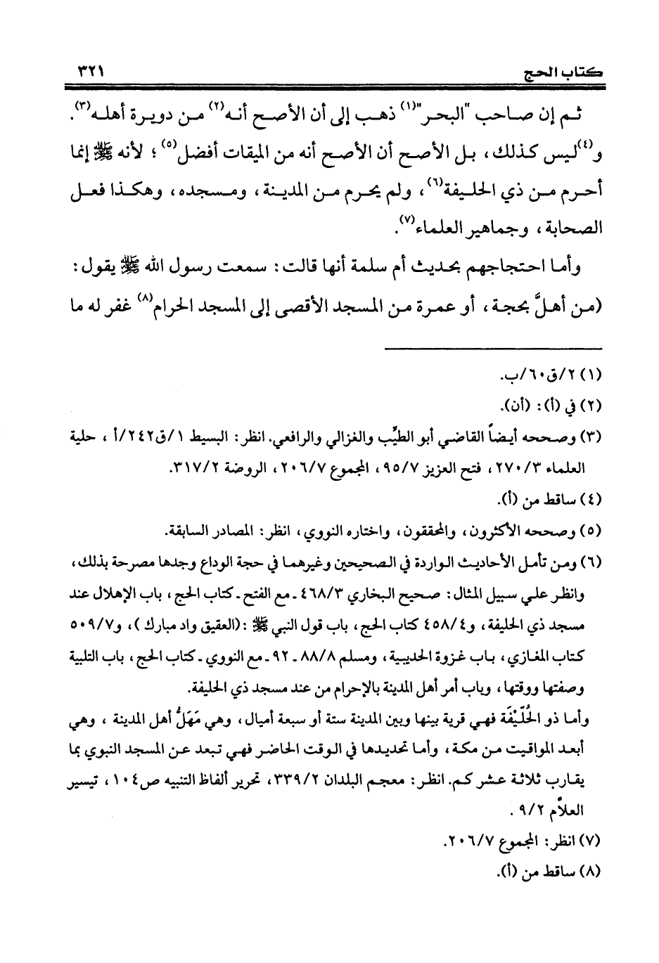 (¬6) ومن تأمل الأحاديث الواردة في الصحيحين وغيرهما في حجة الوداع وجدها مصرحة بذلك، وانظر علي سبيل المثال: صحيح البخاري 3/ 468 - مع الفتح - كتاب الحج، باب الإهلال عند مسجد ذي الحليفة، و 4/ 458 كتاب الحج، باب قول النبي - صلى الله عليه وسلم -: (العقيق واد مبارك)، و 7/ 509 كتاب المغازي، باب غزوة الحديبية، ومسلم 8/ 88 - 92 - مع النووي - كتاب الحج، باب التلبية وصفتها ورقتها، وباب أمر أهل المدينة بالإحرام من عند مسجد ذي الحليفة.