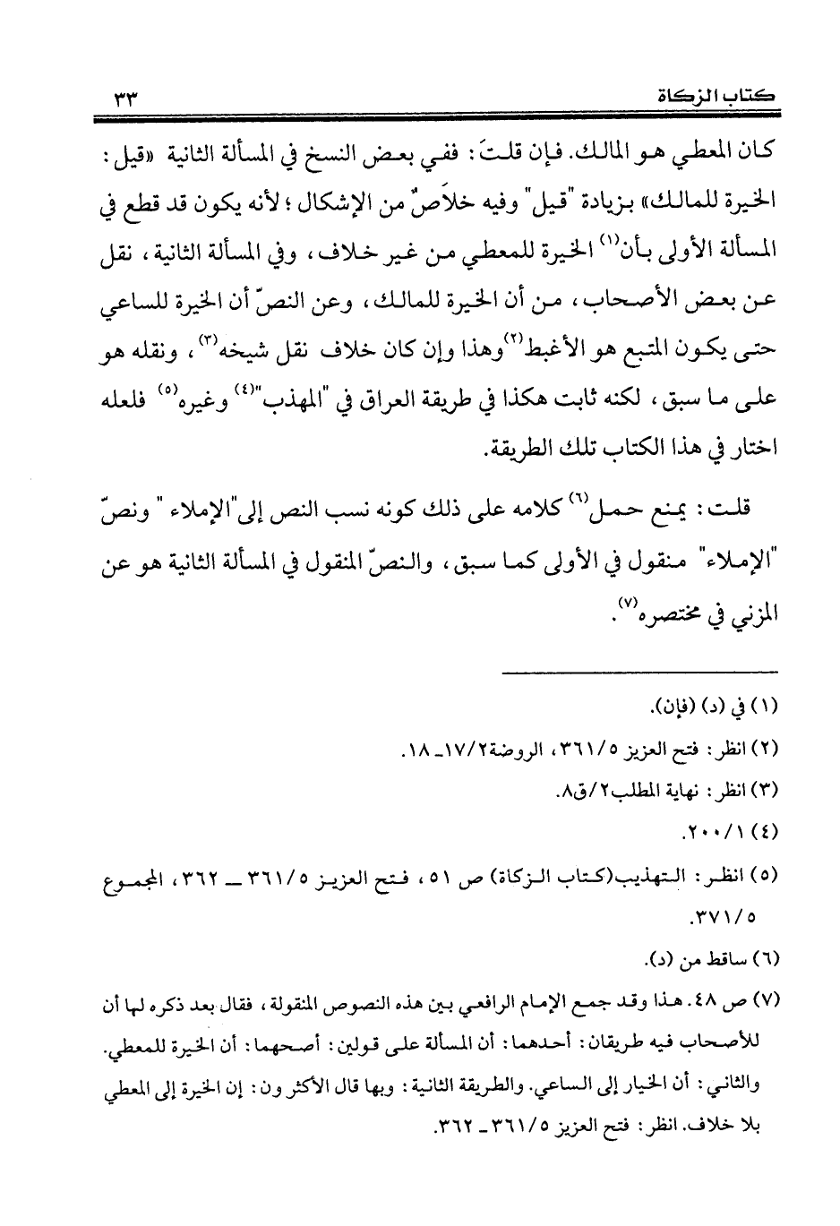(¬5) انظر: التهذيب (كتاب الزكاة) ص 51، فتح العزيز 5/ 361 - 362، المجموع 5/ 371.