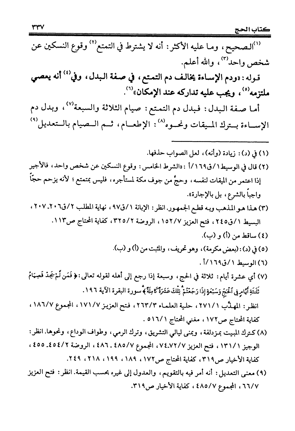(¬2) قال في الوسيط 1/ ق 169/ أ: "الشرط الخامس: وقوع النسكين عن شخص واحد، فالأجير إذا اعتمر من الميقات لنفسه، وحجَّ من جوف مكة لمستأجره، فليس بمتمتع؛ لأنه يزحم حجّاً واجباً بالشرع، بل بالإجارة".