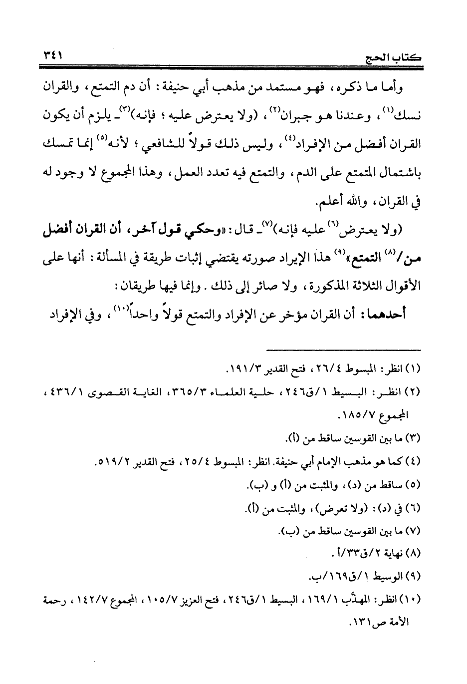 وأمّا ما ذكره، فهو مستمد من مذهب أبي حنيفة: أن دم التمتع، والقران نسك (¬1)، وعندنا هو جبران (¬2)، (ولا يعترض عليه؛ فإنّه) (¬3) - يلزم أن يكون القران أفضل من الإفراد (¬4)، وليس ذلك قولاً للشافعي؛ لأنّه (¬5) إنما تمسك باشتمال المتمتع على الدم، والتمتع فيه تعدد العمل، وهذا المجموع لا وجود له في القران، والله أعلم.
