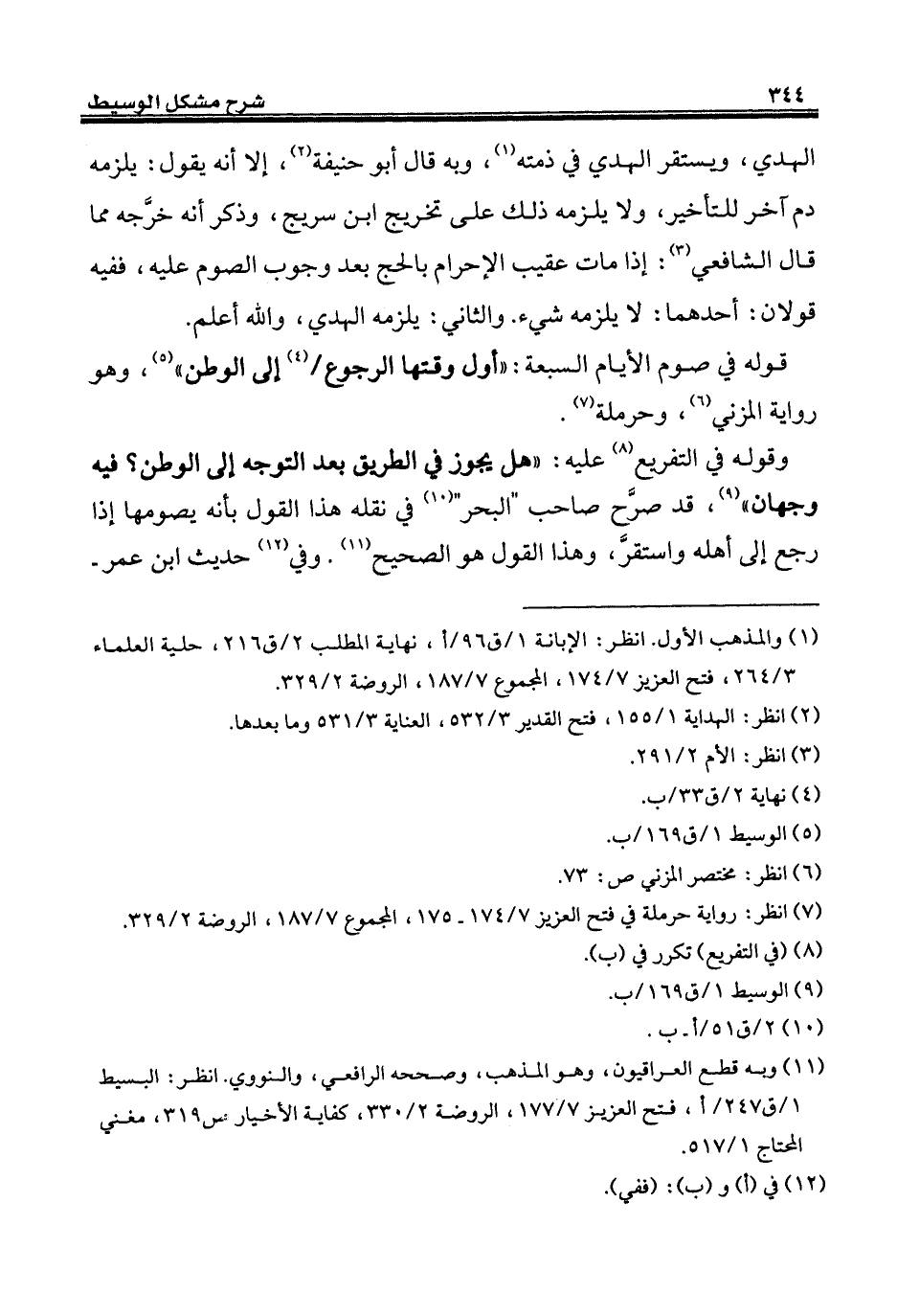 (¬7) انظر: رواية حرملة في فتح العزيز 7/ 174 - 175، المجموع 7/ 187، الروضة 2/ 329.
