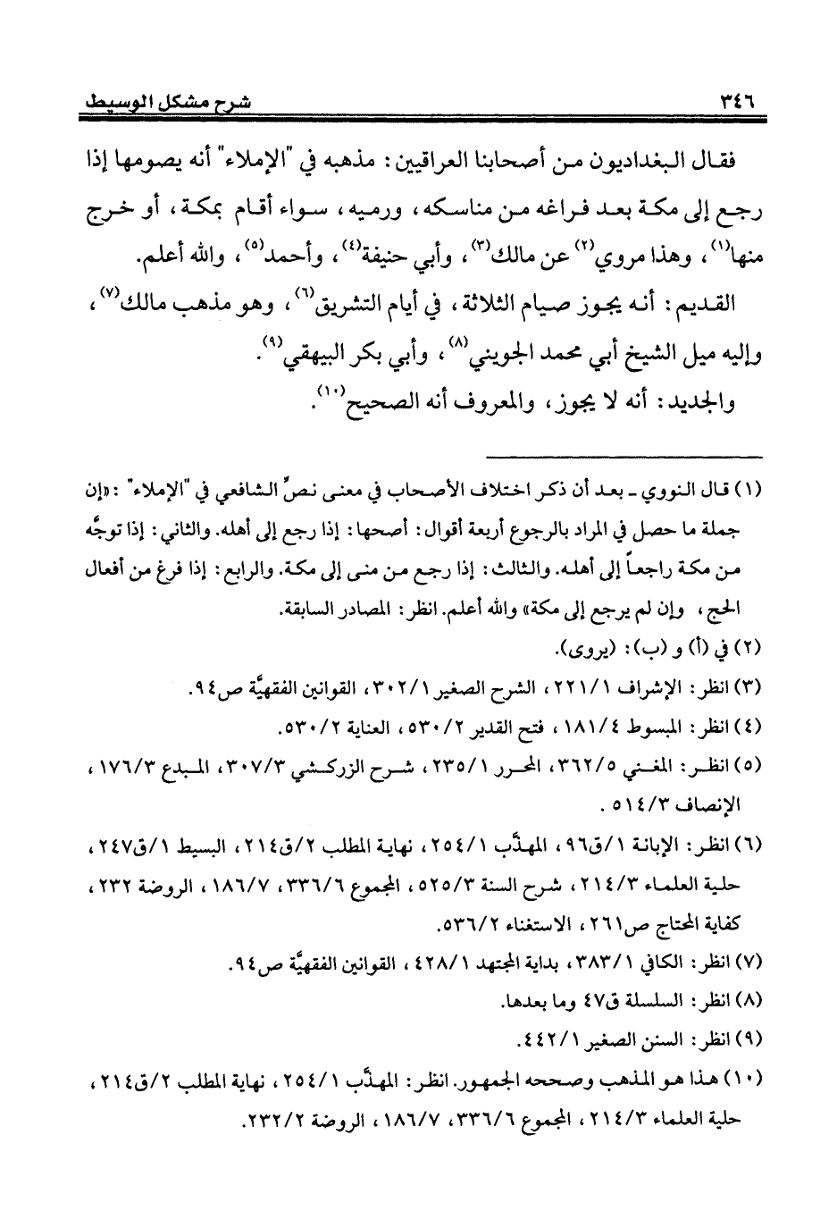 (¬10) هذا هو المذهب وصححه الجمهور. انظر: المهذَّب 1/ 254، نهاية المطلب 2/ ق 214، حلية العلماء 3/ 214، المجموع 6/ 336، 7/ 186، الروضة 2/ 232.