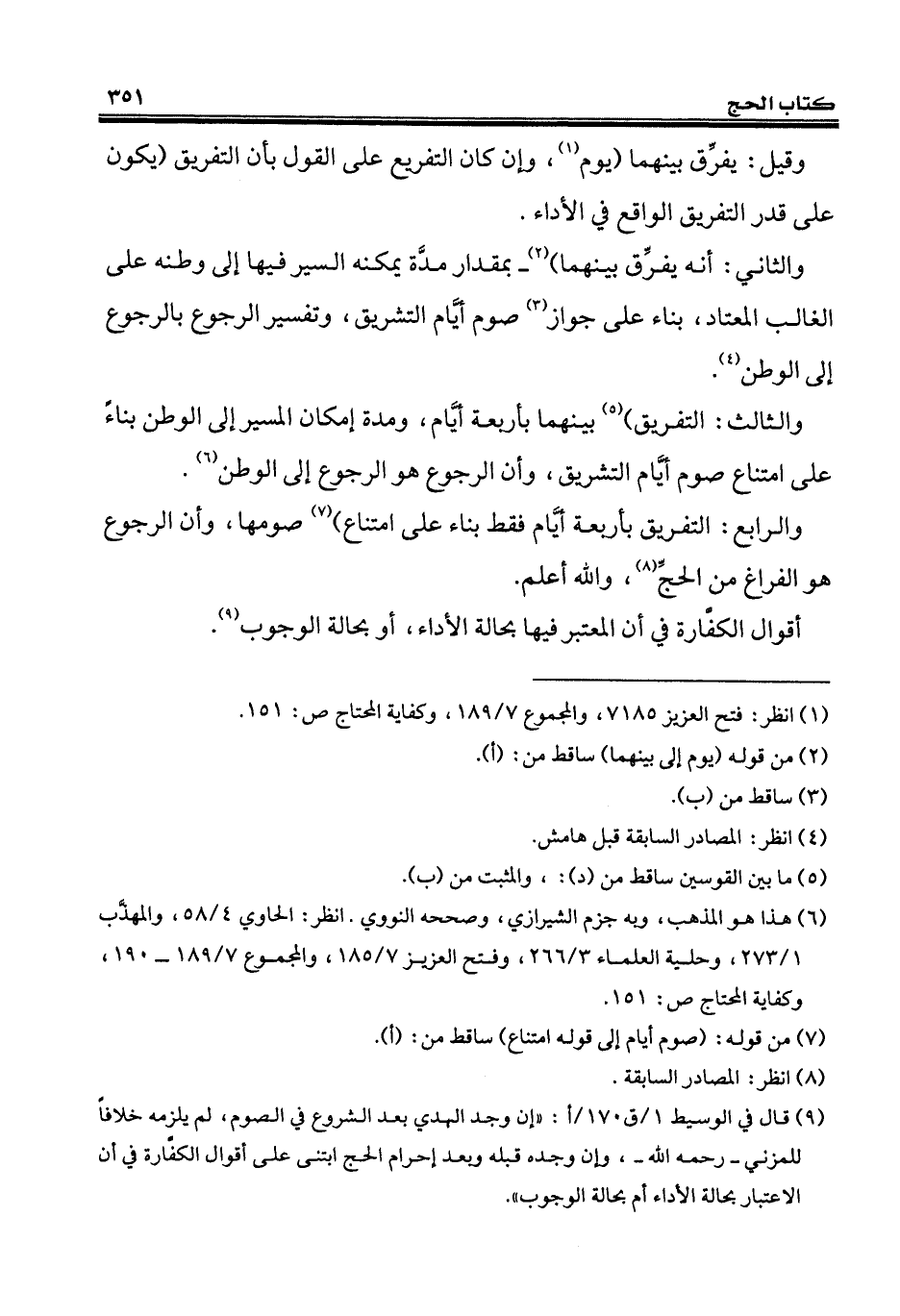 والرابع: التفريق بأربعة أيَّام فقط بناء على امتناع) (¬7) صومها، وأن الرجوع هو الفراغ من الحجَّ (¬8)، والله أعلم.