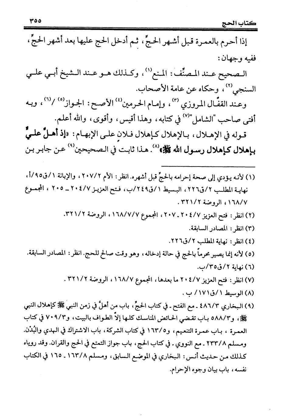 (¬1) لأنّه يؤدي إلى صحة إحرامه بالحجِّ قبل أشهره. انظر: الأم 2/ 207، والإبانة 1/ ق 95/ أ، نهاية المطلب 2/ ق 226، البسيط 1/ ق 249/ ب، فتح العزيز 7/ 204 - 205، المجموع 7/ 168، الروضة 2/ 321.